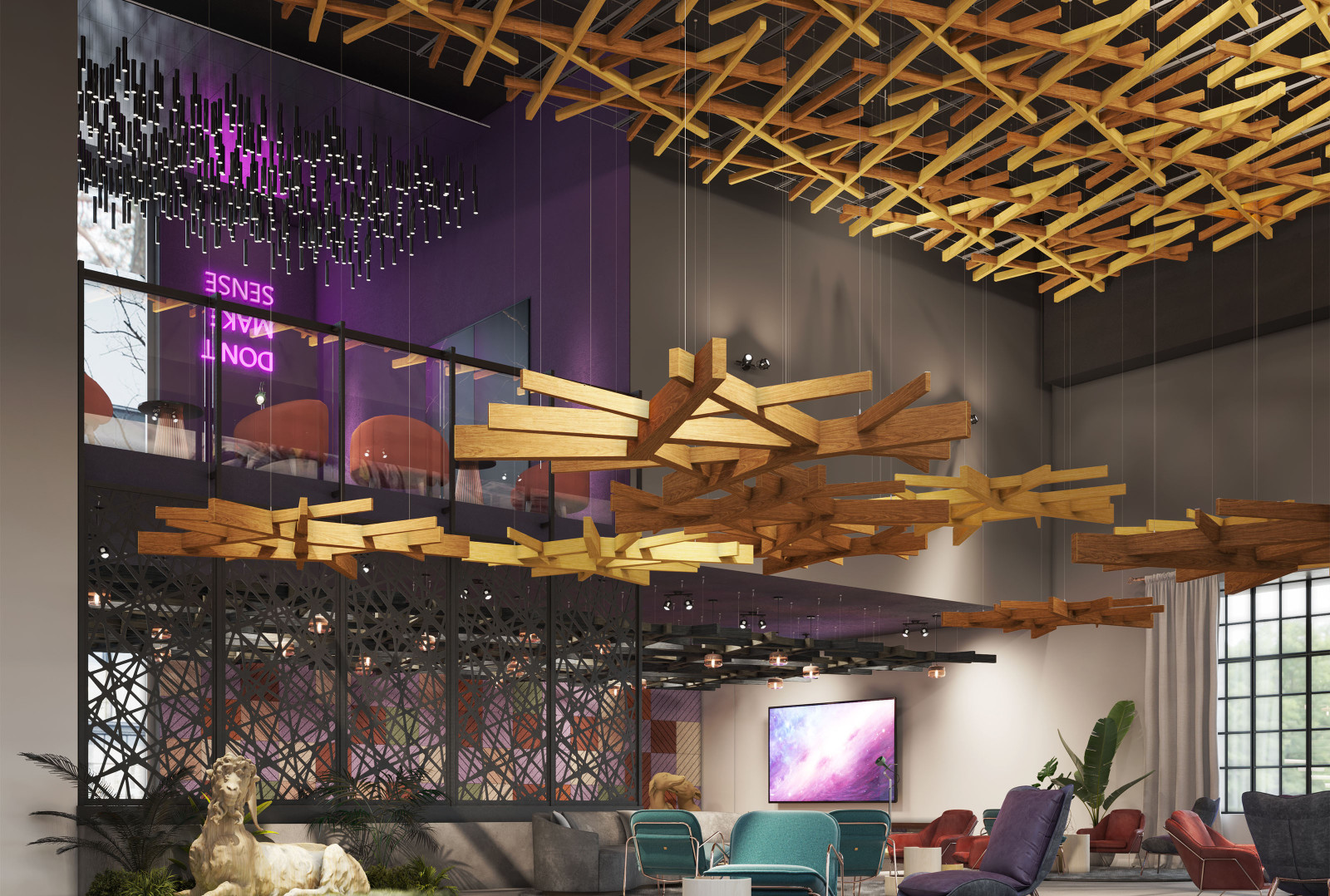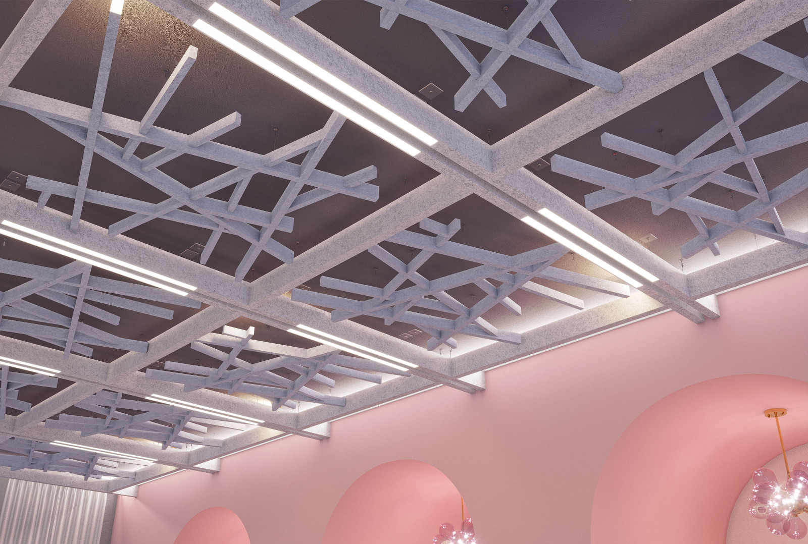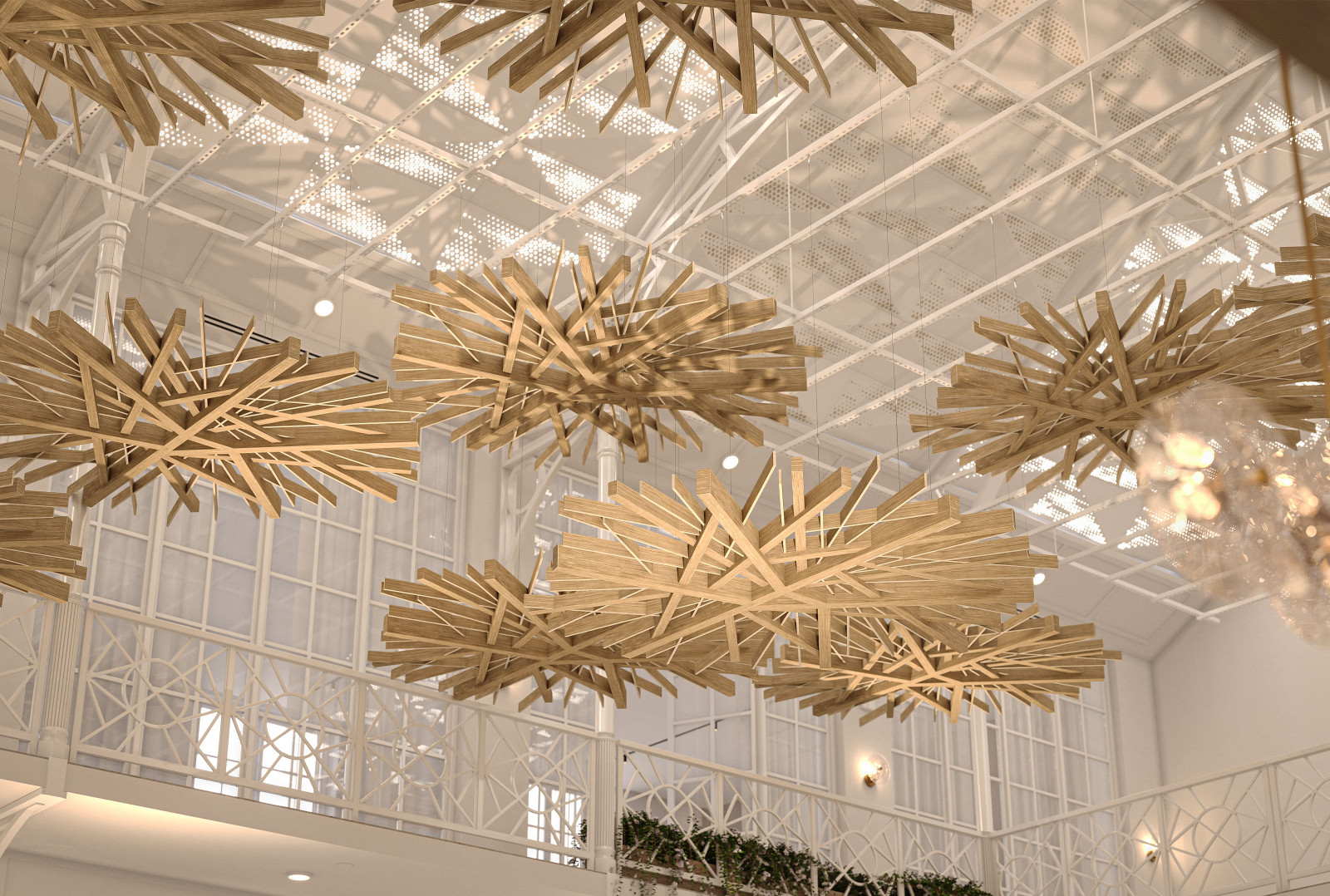 Arborisa®'s biophilic acoustic modules channel natural inspirations to craft a collection of designs that combine organically angular accents and abstract linear forms. These large-scale acoustic clouds span across spaces, providing robust auditory coverage to inhabitants below. Designed to emulate the expansive look of a tree canopy, these modules, made of our Soft Sound® acoustic material, branch off in various directions, providing an array of acoustic coverage whether as a single module or grouped together. The elevated aesthetic of this acoustic cloud system arrives in four naturally expansive designs: Arborisa® Nest, Arborisa® Axil, Arborisa® Aura, and Arborisa® Denza. Get A Quote