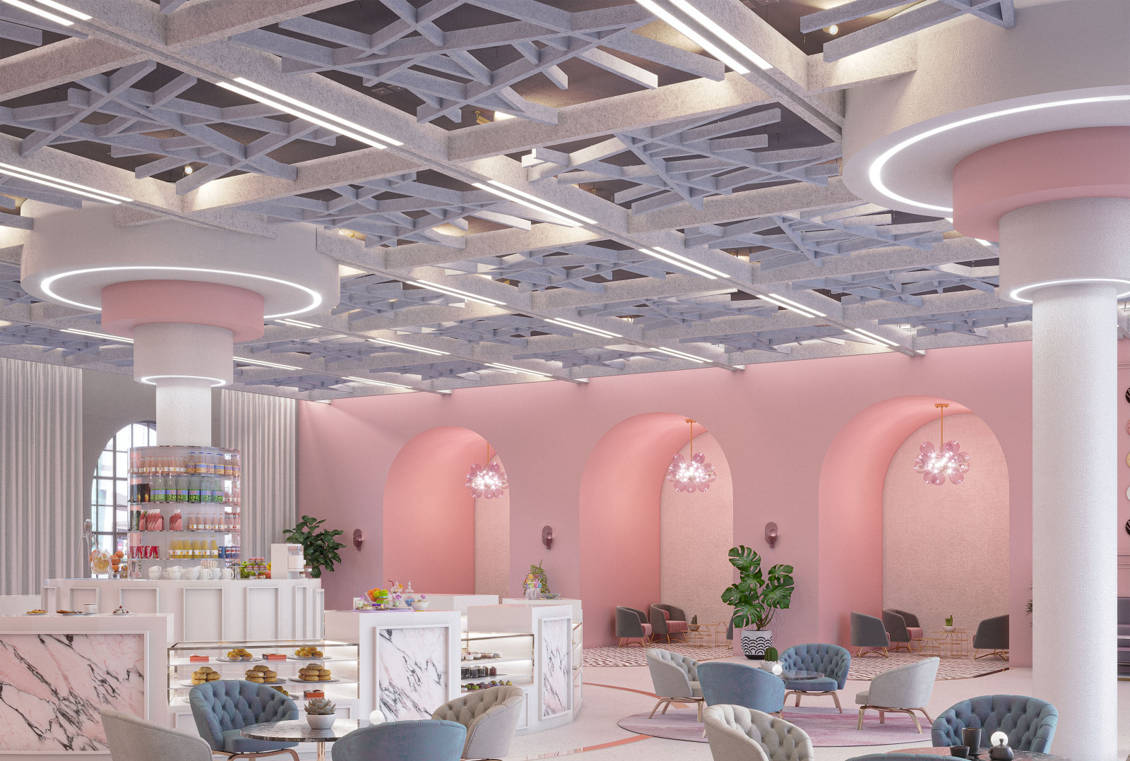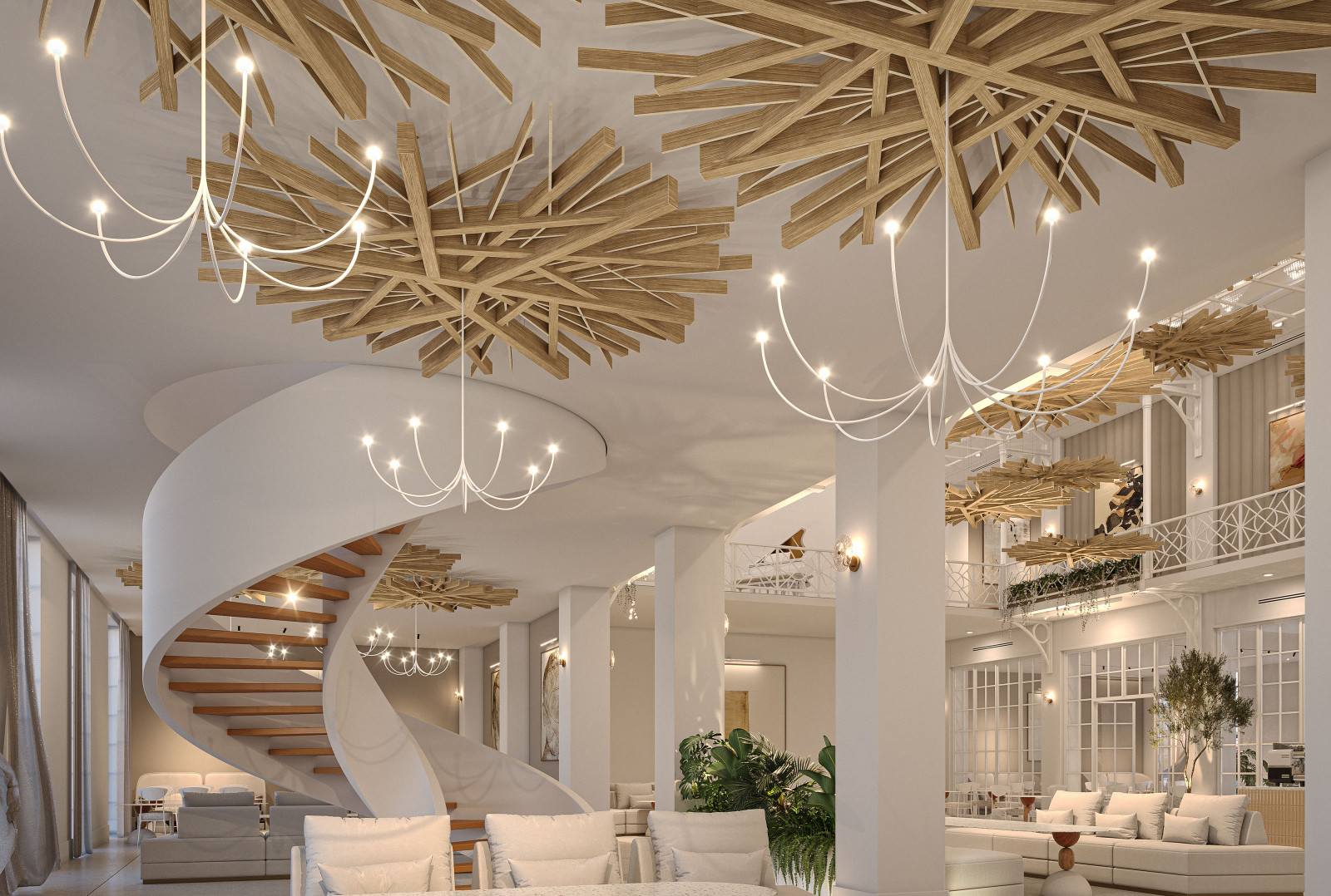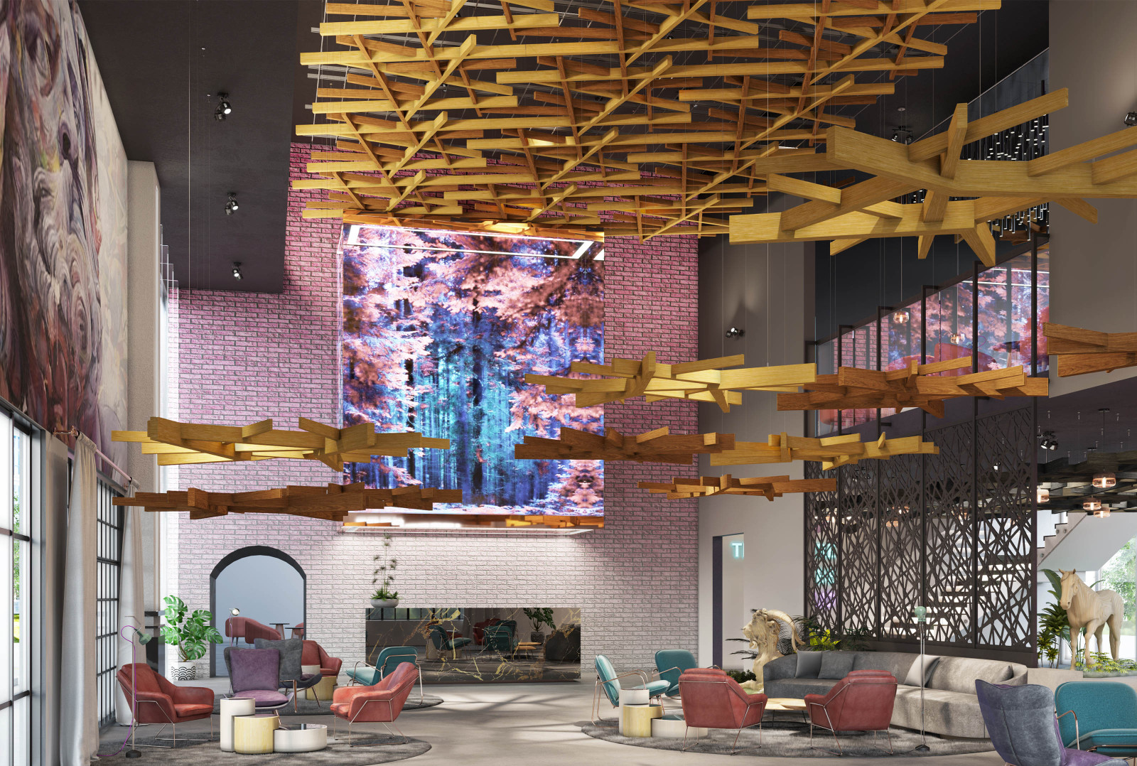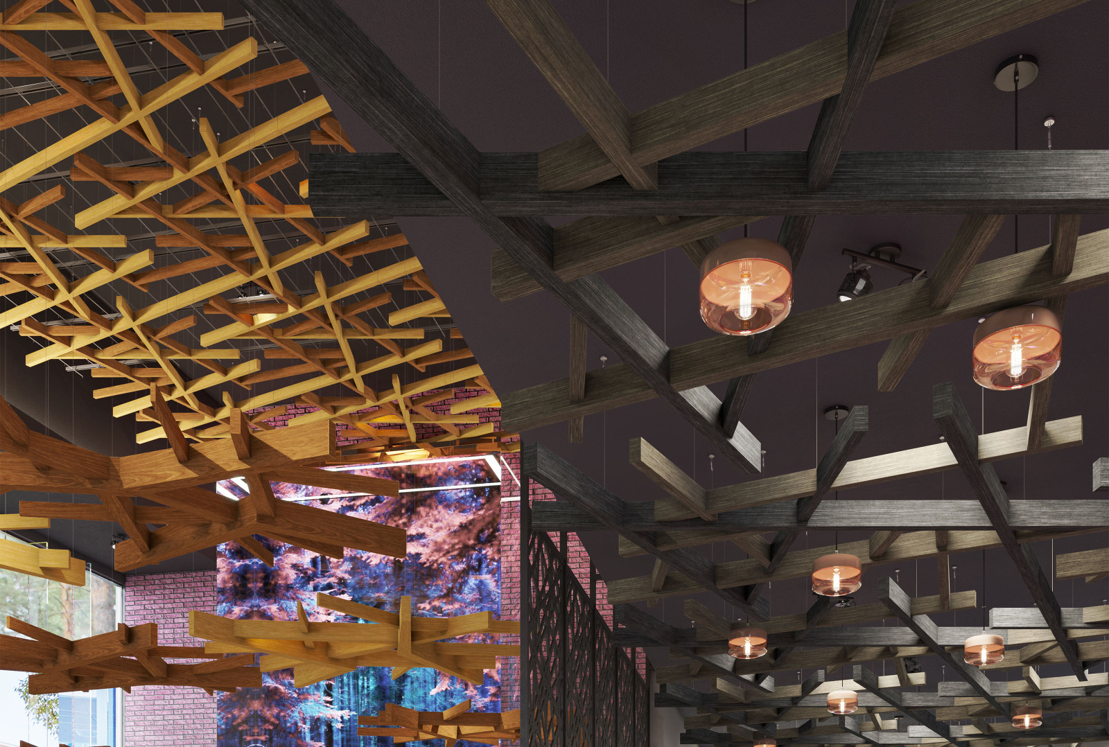 Arborisa®'s biophilic acoustic modules channel natural inspirations to craft a collection of designs that combine organically angular accents and abstract linear forms. These large-scale acoustic clouds span across spaces, providing robust auditory coverage to inhabitants below. Designed to emulate the expansive look of a tree canopy, these modules, made of our Soft Sound® acoustic material, branch off in various directions, providing an array of acoustic coverage whether as a single module or grouped together. The elevated aesthetic of this acoustic cloud system arrives in four naturally expansive designs: Arborisa® Nest, Arborisa® Axil, Arborisa® Aura, and Arborisa® Denza. Get A Quote