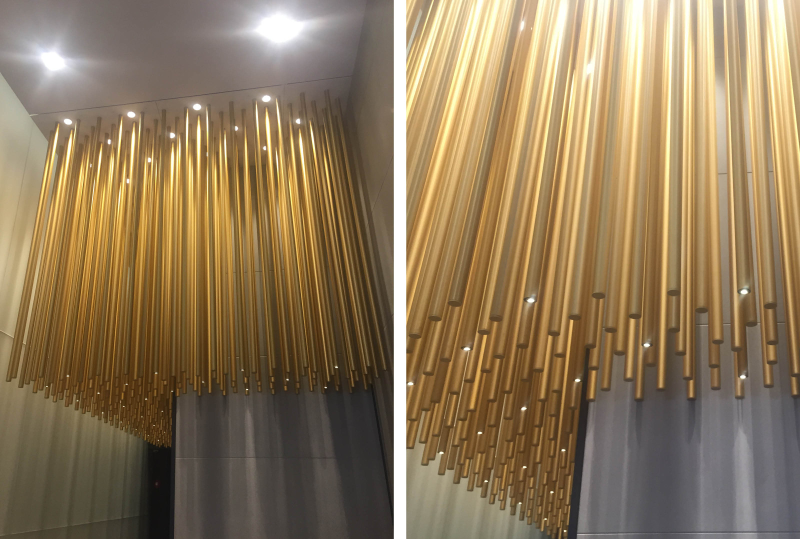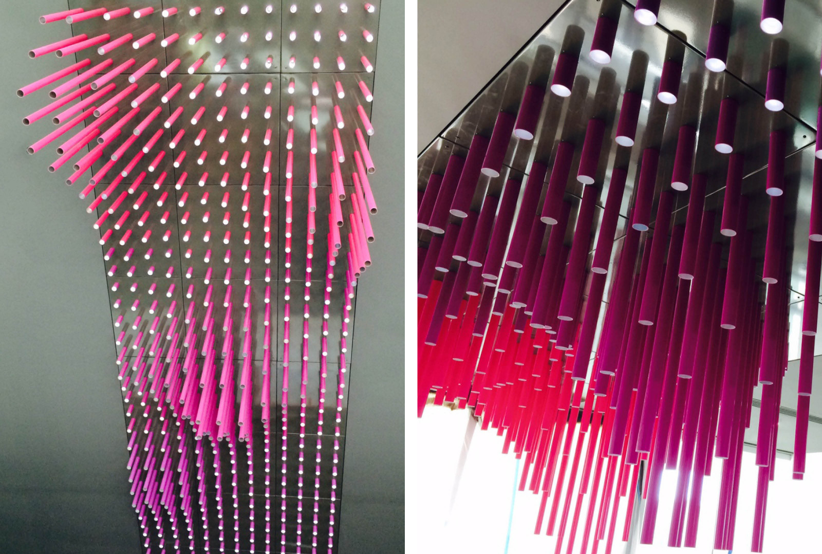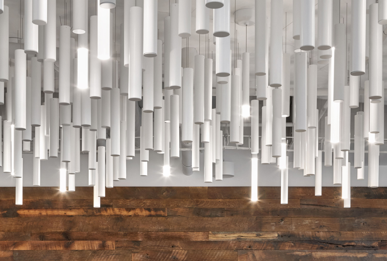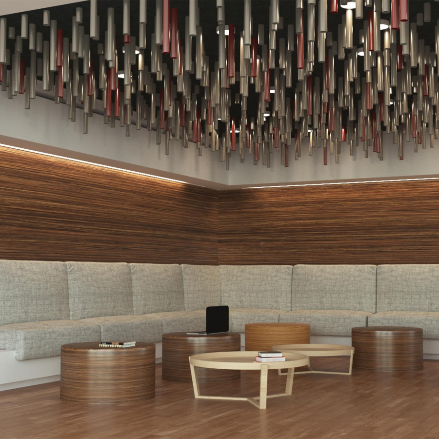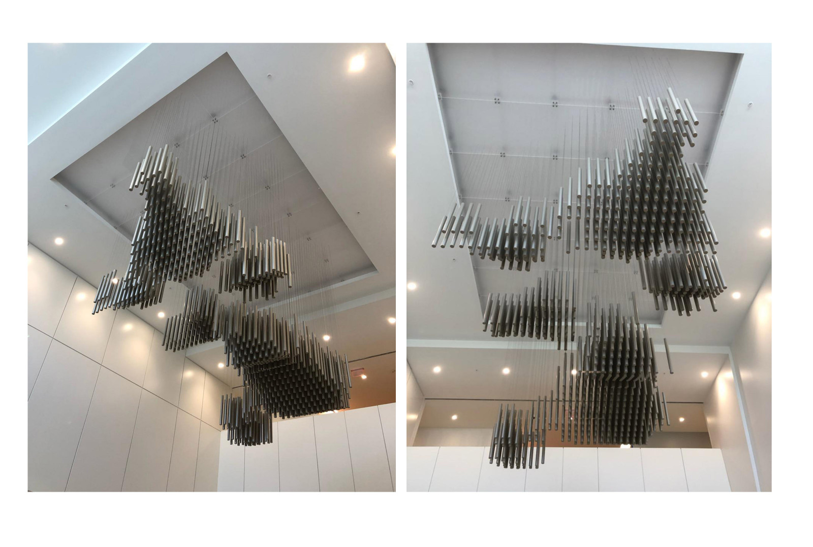Even with a minimal number of modules, you can generate huge design impact using Alluvia® Custom. We offer tailorable system components in each tile so that Alluvia® Custom fulfills your design goal, whether you are working with a tall atrium or a lower-height ceiling. The end products come equipped with all the necessary attachments and mounting hardware, making installation approachable and simple. Tubes are easily removable and offer the opportunity to integrate lighting.