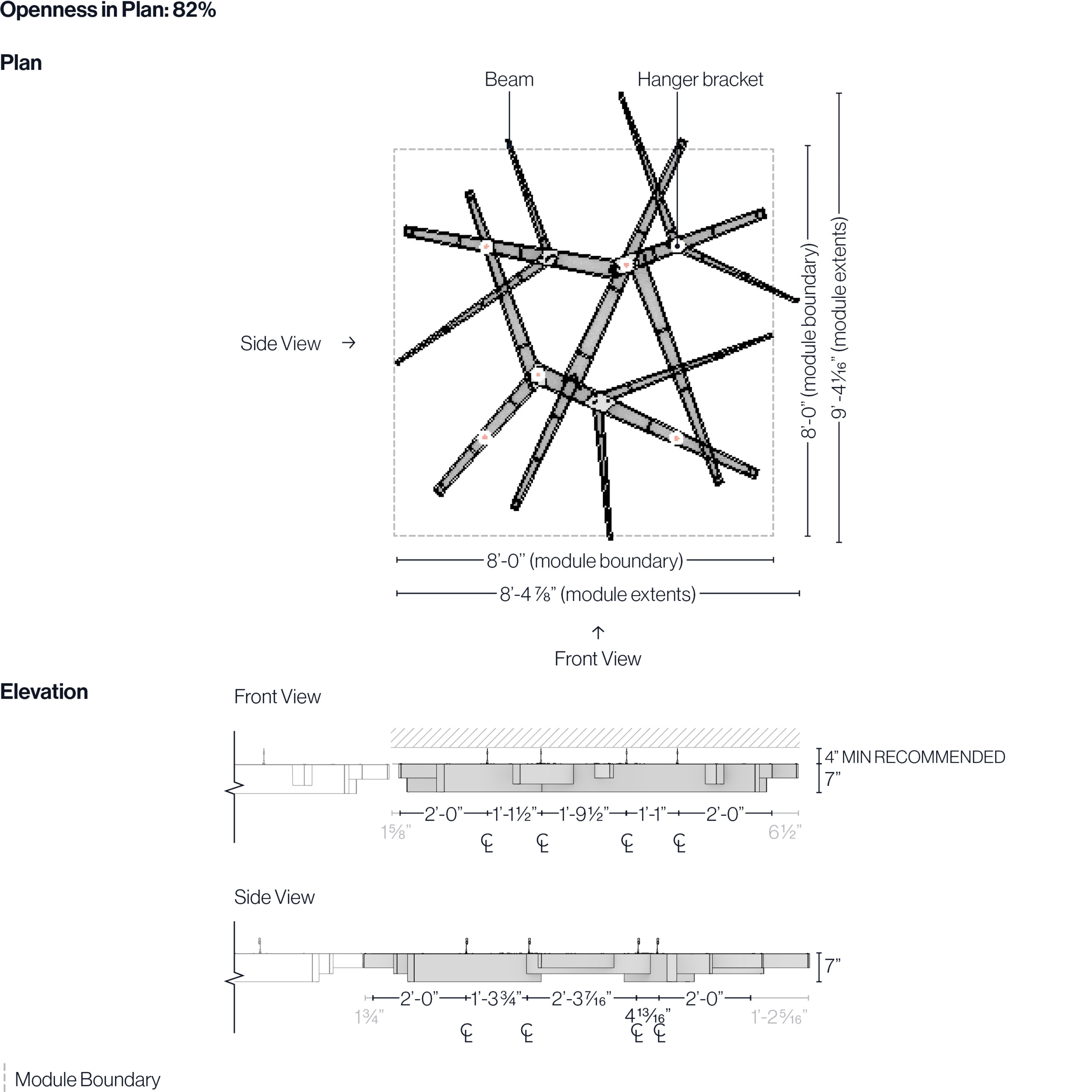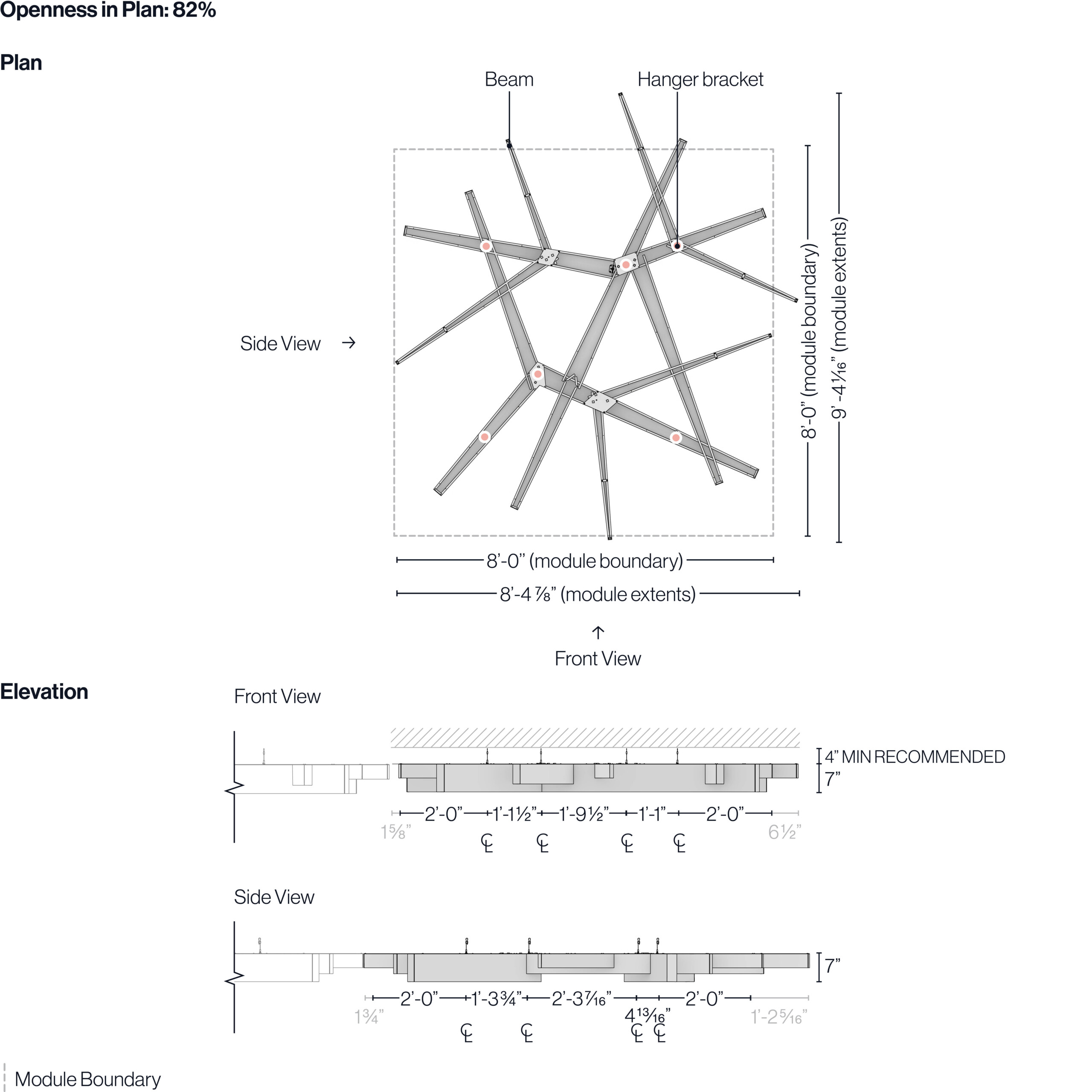 Arborisa’s open grid design makes integrating systems above or below the modules simple and feasible. Easily removable fins and open structure makes accessing lights, HVAC, rigging points, plumbing, AV equipment, and life safety systems easy for your maintenance team.