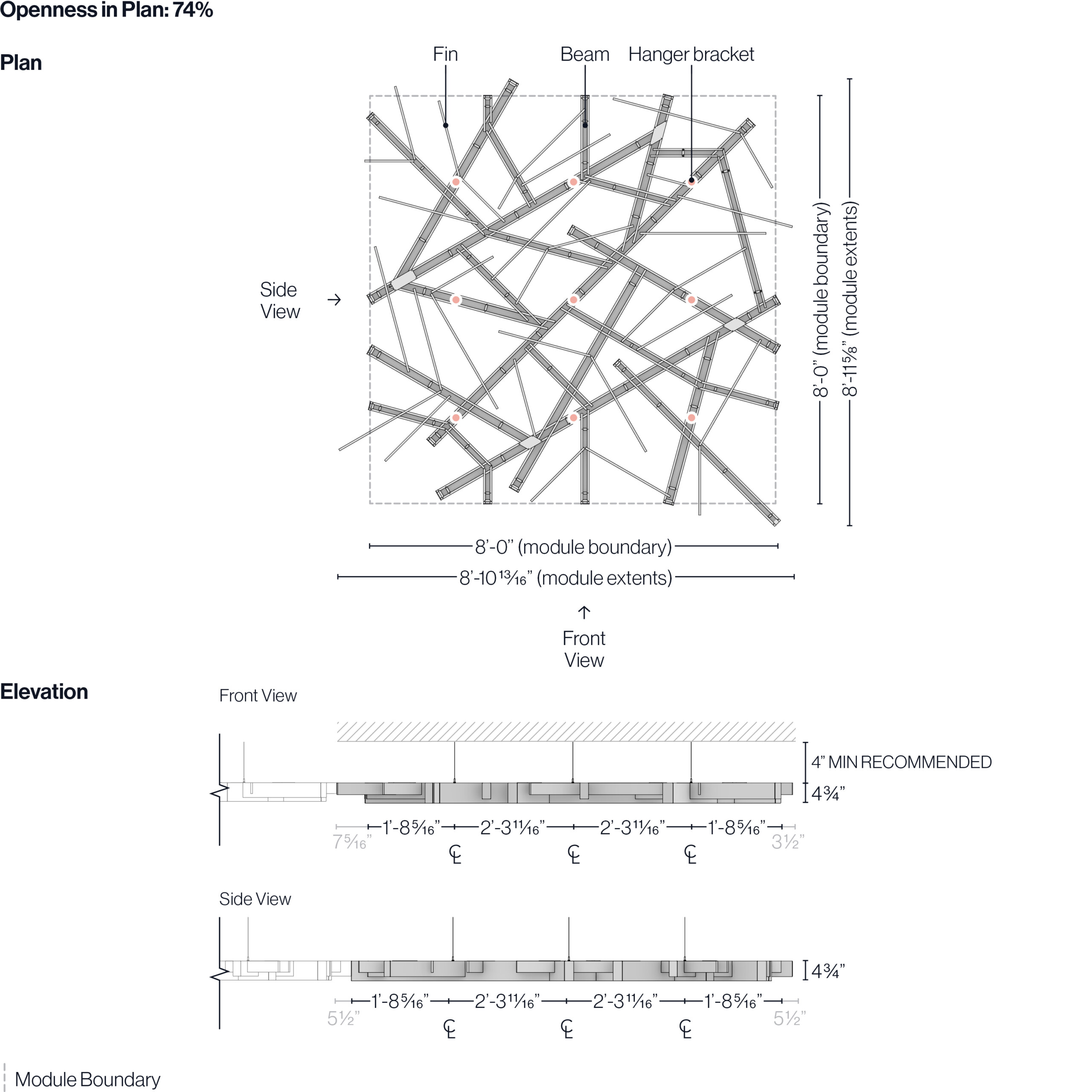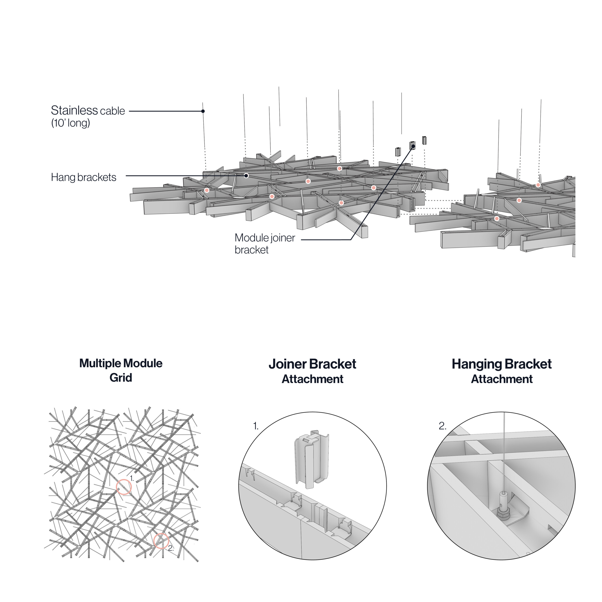 Arborisa’s open grid design makes integrating systems above or below the modules simple and feasible. Easily removable fins and open structure makes accessing lights, HVAC, rigging points, plumbing, AV equipment, and life safety systems easy for your maintenance team.