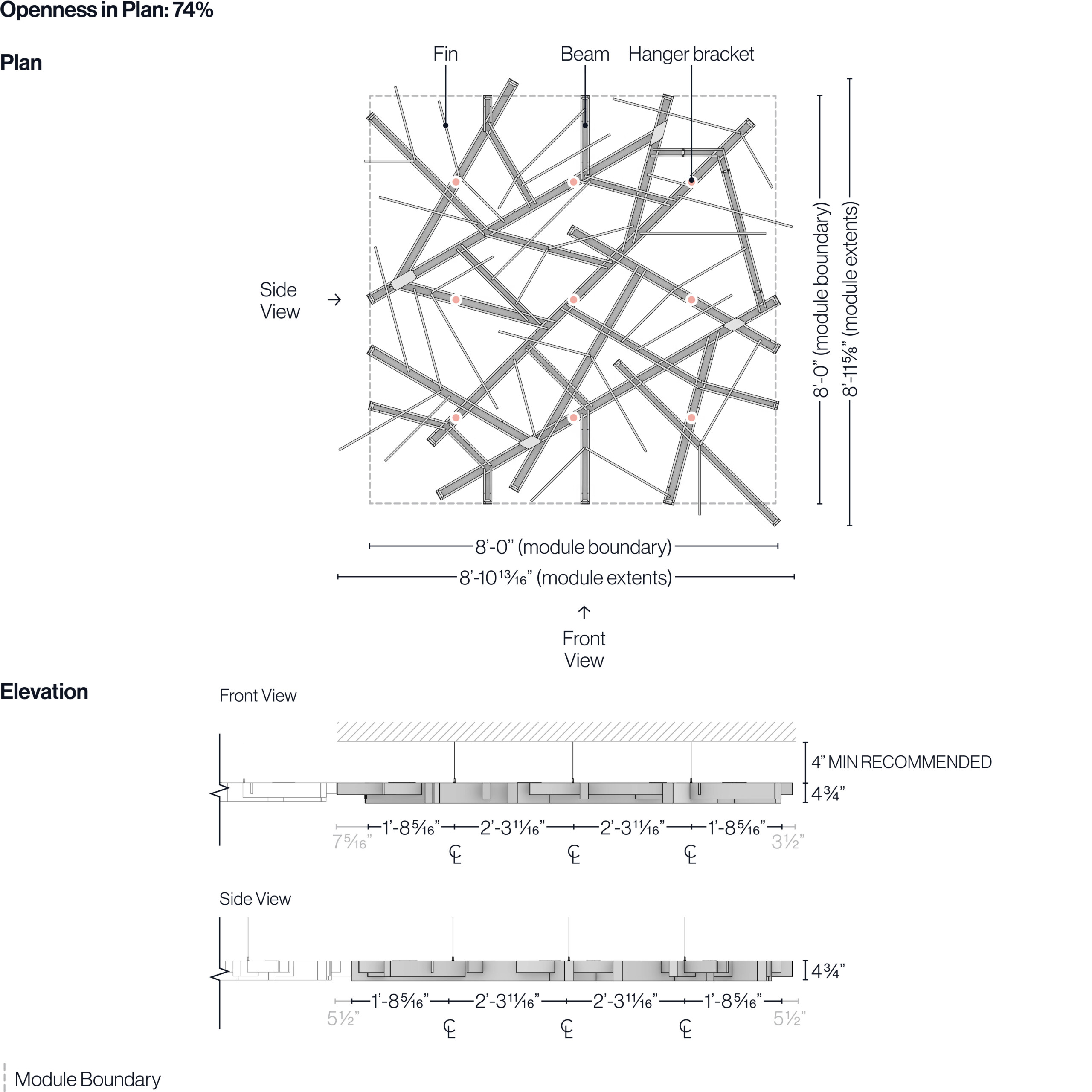 Arborisa®’s open grid design makes integrating systems above or below the modules simple and feasible. Easily removable fins and open structure makes accessing lights, HVAC, rigging points, plumbing, AV equipment, and life safety systems easy for your maintenance team.