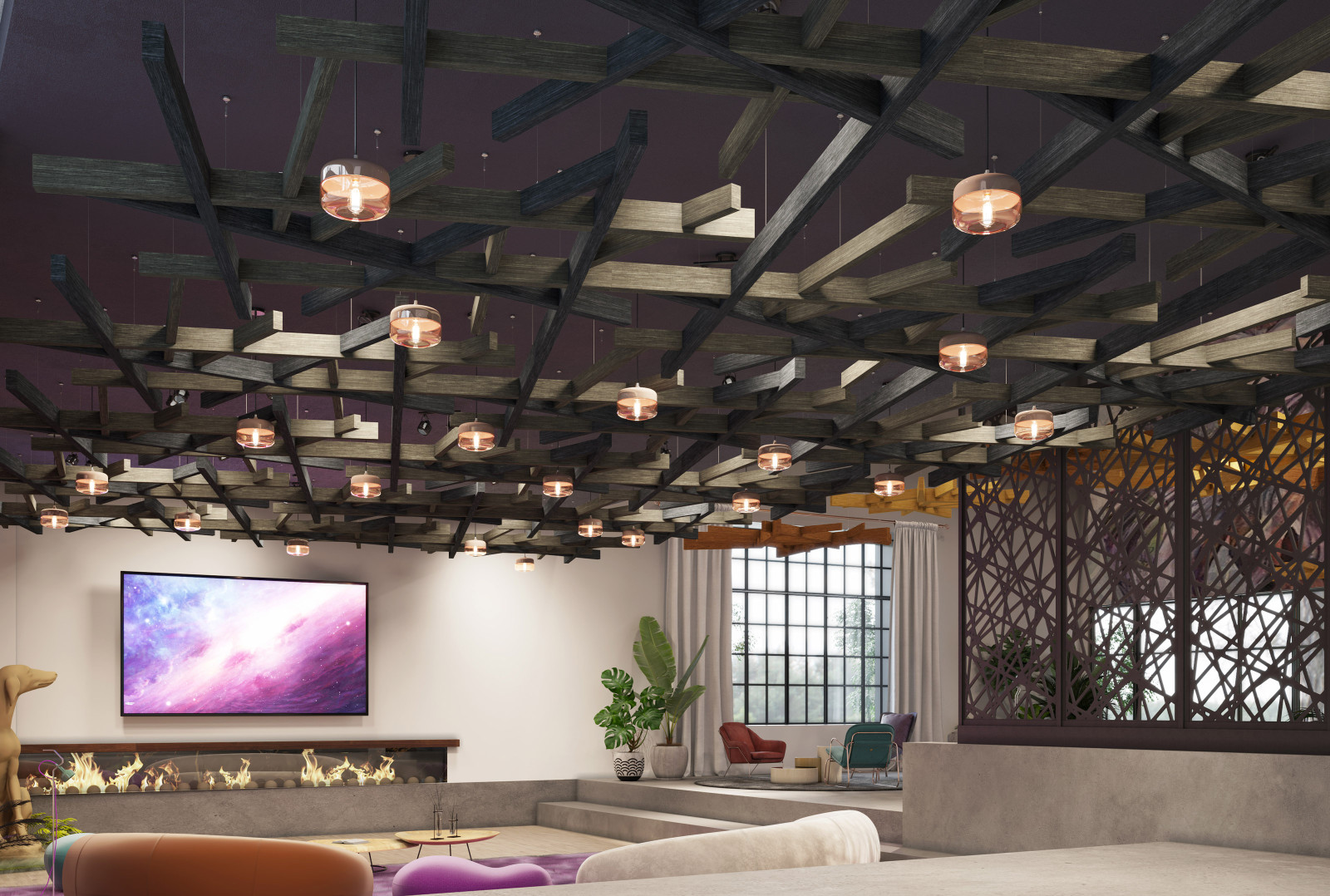 Arborisa® Nest creates an arrangement of acoustic attenuation by linking its interconnected modules with other Nest modules. These sparse branches were designed with accessibility and openness in mind, as these bisecting baffles feature easily removable fins to reach lighting and HVAC systems below and above the installed modules. Specify this system in a myriad of solid colors, Duo tone finish or Soft Sound® Premium Wood Texture for a more natural, biophilic look.