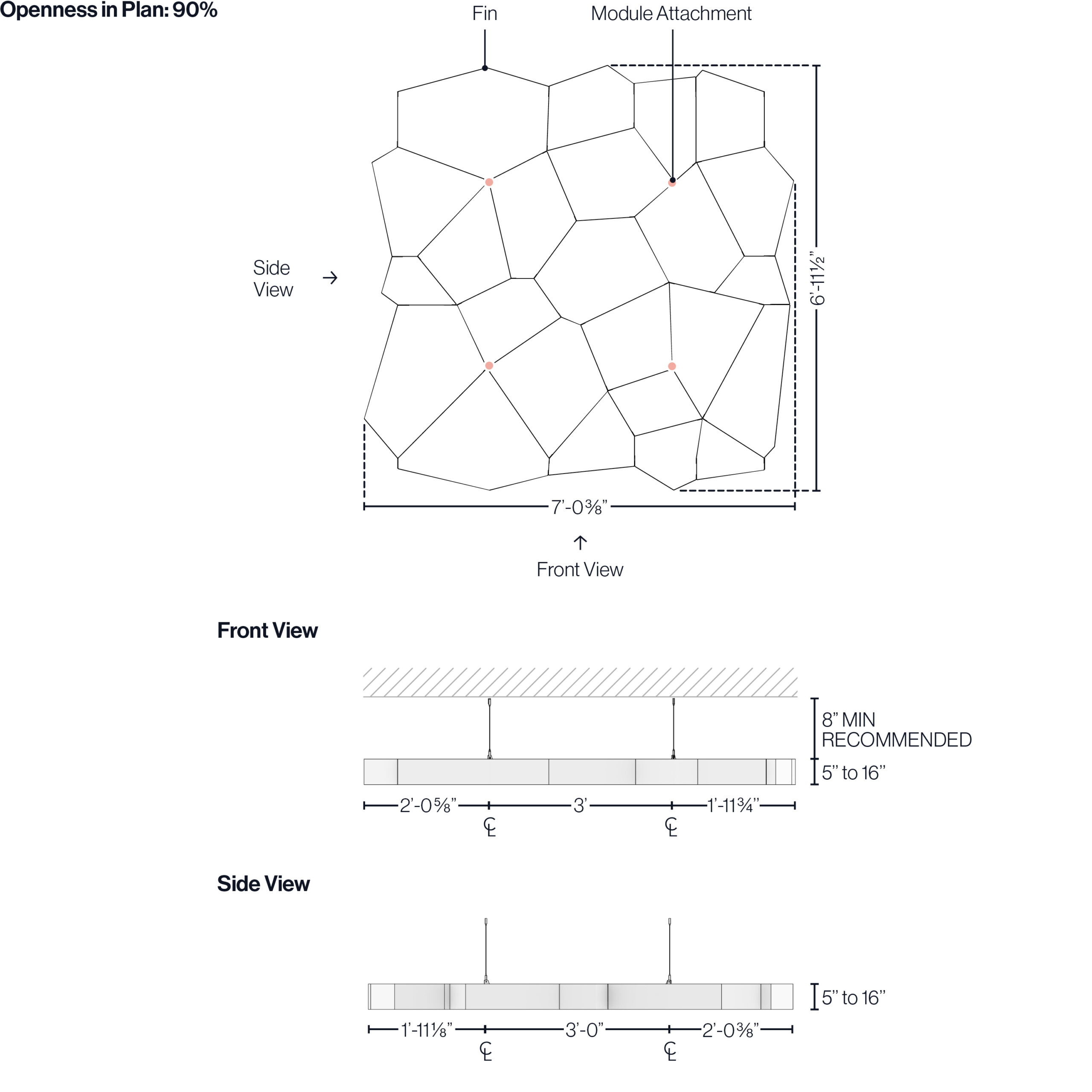 Atmosphera® Pulse's open design makes integrating systems above or below the modules simple and feasible. Easily removable fins and open structure makes accessing lights, HVAC, rigging points, plumbing, AV equipment, and life safety systems easy for your maintenance team.