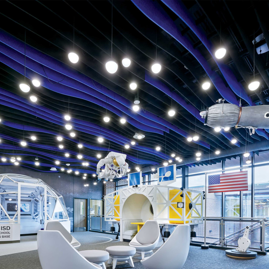 For a custom look without the custom price tag, preconfigured Atmosphera® modules offer innovative design impact with a quick and easy installation process. Achieve a cleaner design in a fraction of the time versus independently hung baffles.