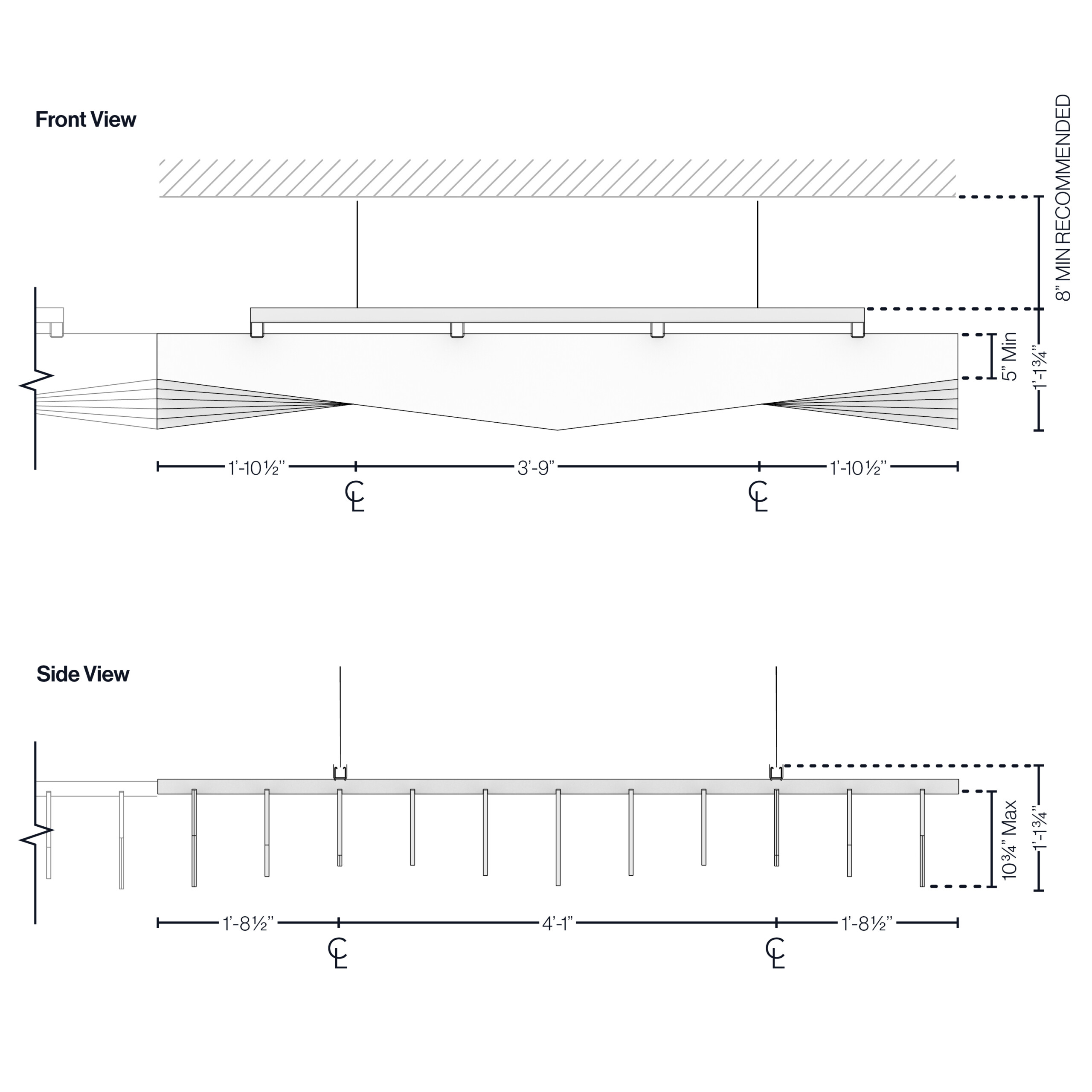 Rise’s ceiling baffles form a faceted series of geometric planes, it’s sharp angles keep your eye engaged along its path as it continues to cut back and forth peeling away new layers. But don’t worry, the path is a quiet one thanks to the Soft Sound® fins which provide acoustic control to any space on Rise’s trail.