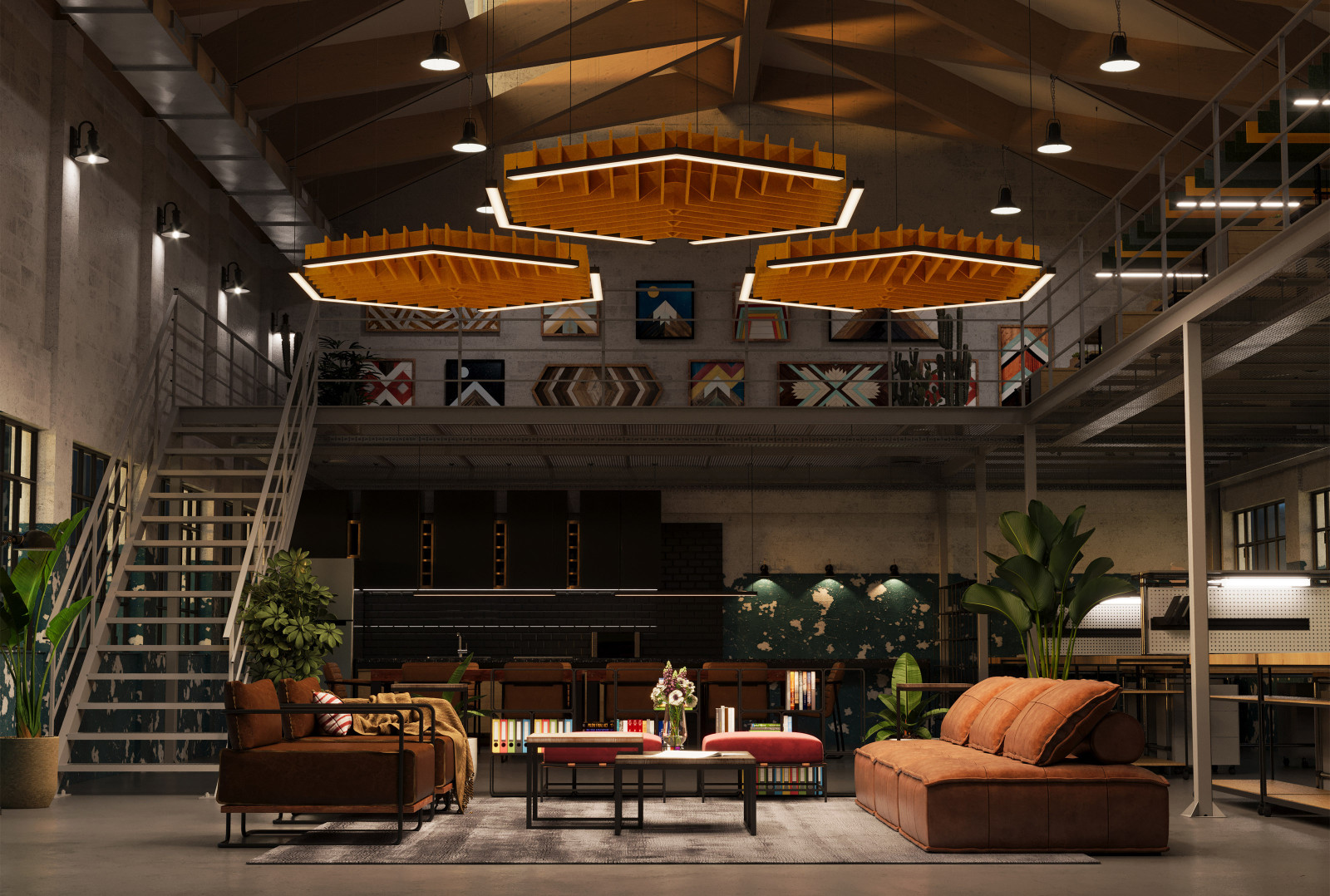 LumAngle™ 120 is a blank canvas for architects and designers to create truly unique lighting experiences. Play with the angled configurations to design dramatic geometric clusters that will captivate any space with impressive illumination. Create geometric arrangements using multiple LumAngle™ 120 pendant modules to frame hexagonal systems such as SoftGrid® or SoftShapes™. Elevate your toolkit with this versatile building block for creating extraordinary luminous spaces.