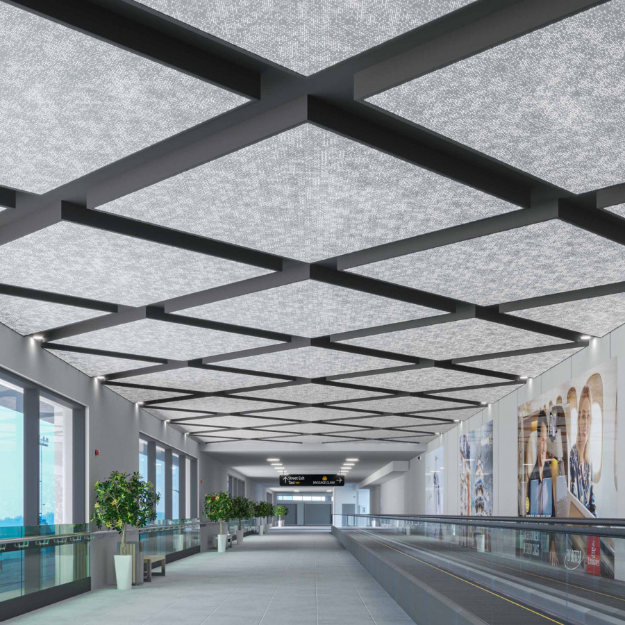 Particle®'s optional non-woven acoustic fabric backer material reduces the impact of noise from everyday annoyances like ringing, typing, and chatter resulting in a more pleasant and productive environment. The acoustic backer works in concert with the design to help reduce and control reverberations leaving a lasting impression at scales ranging from assembly halls to conference rooms.
