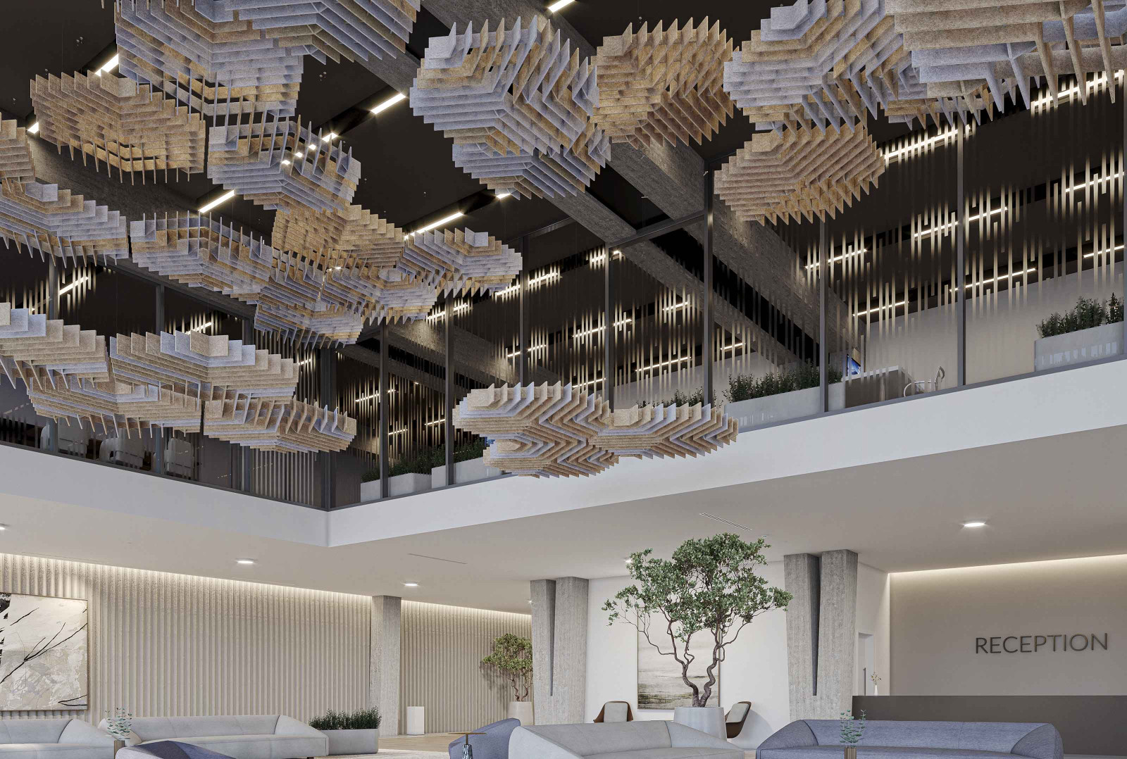 SoftGrid®'s Soft Sound® material reduces the impact of noise from everyday annoyances like ringing, typing, and chatter resulting in a more pleasant and productive environment. SoftGrid®'s material works in concert with the design to help reduce and control reverberations leaving a lasting impression at scales ranging from assembly halls to conference rooms.