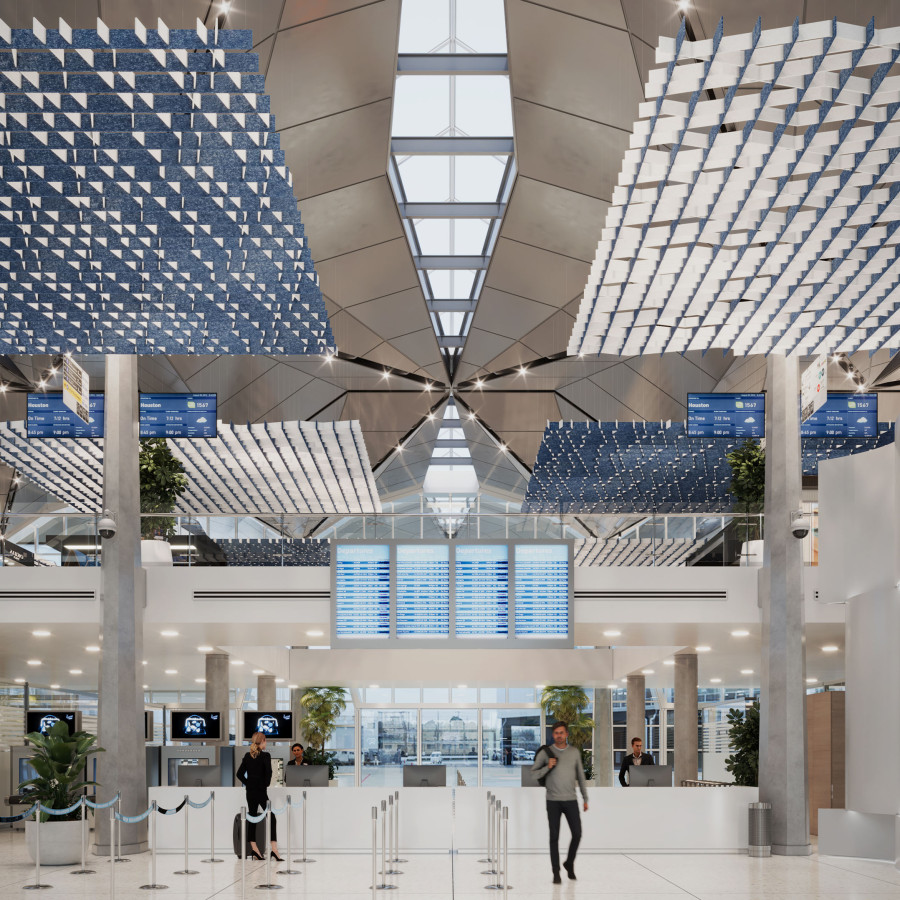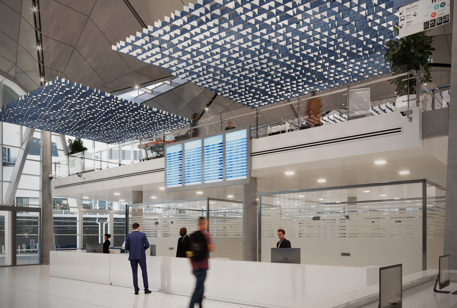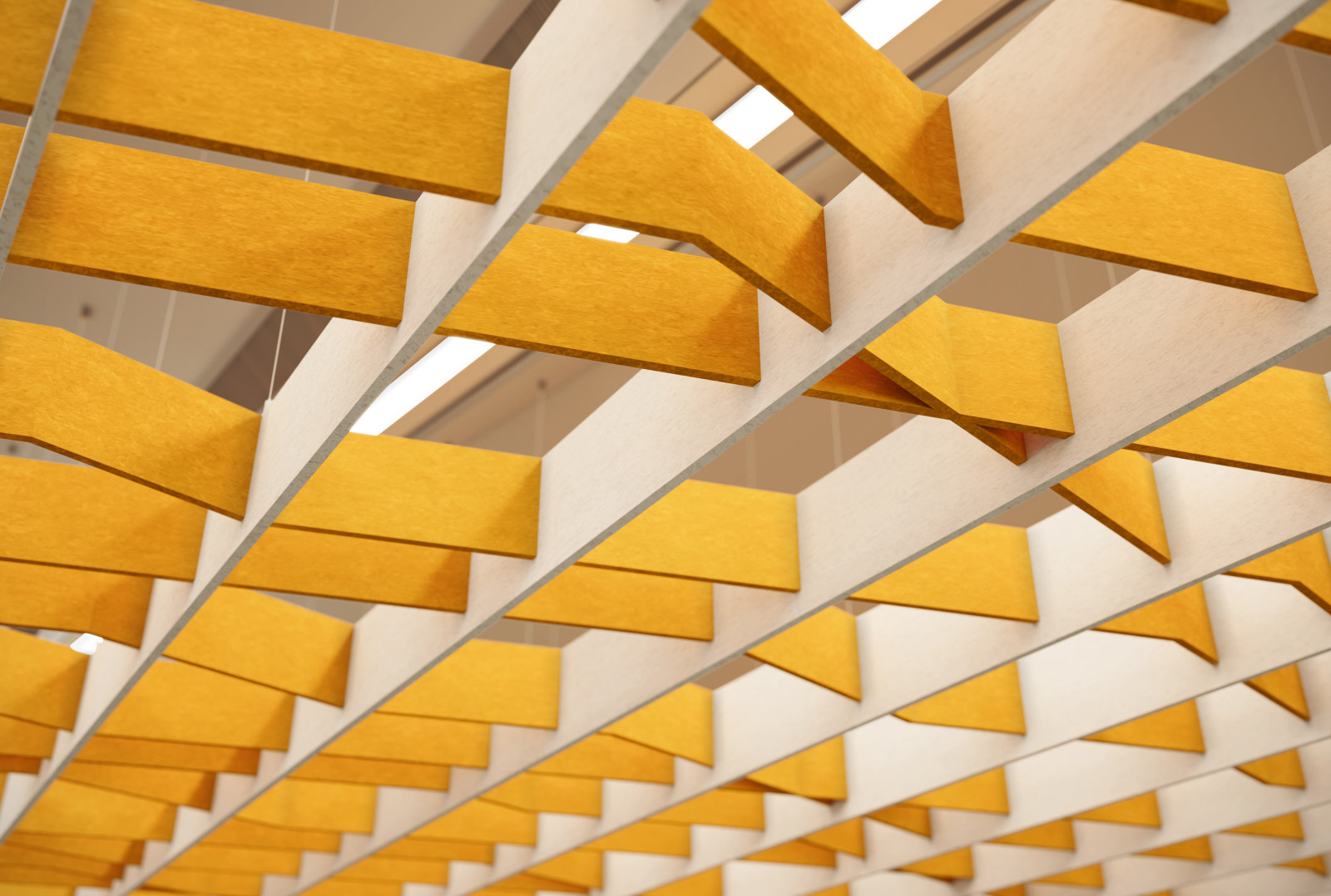 SoftGrid® Nexus brings a sense of structure and dimensionality to your ceiling scape. Featuring a topographical aesthetic, with intersecting linear baffles creating an expansive map of acoustic coverage. Interconnected modules add visual interest to any interior while enhancing the room’s acoustics. This suspended system made of our Soft Sound® acoustic materials is available in various colorful finishes, including our Duo Tone finishes, unlocking new design possibilities.