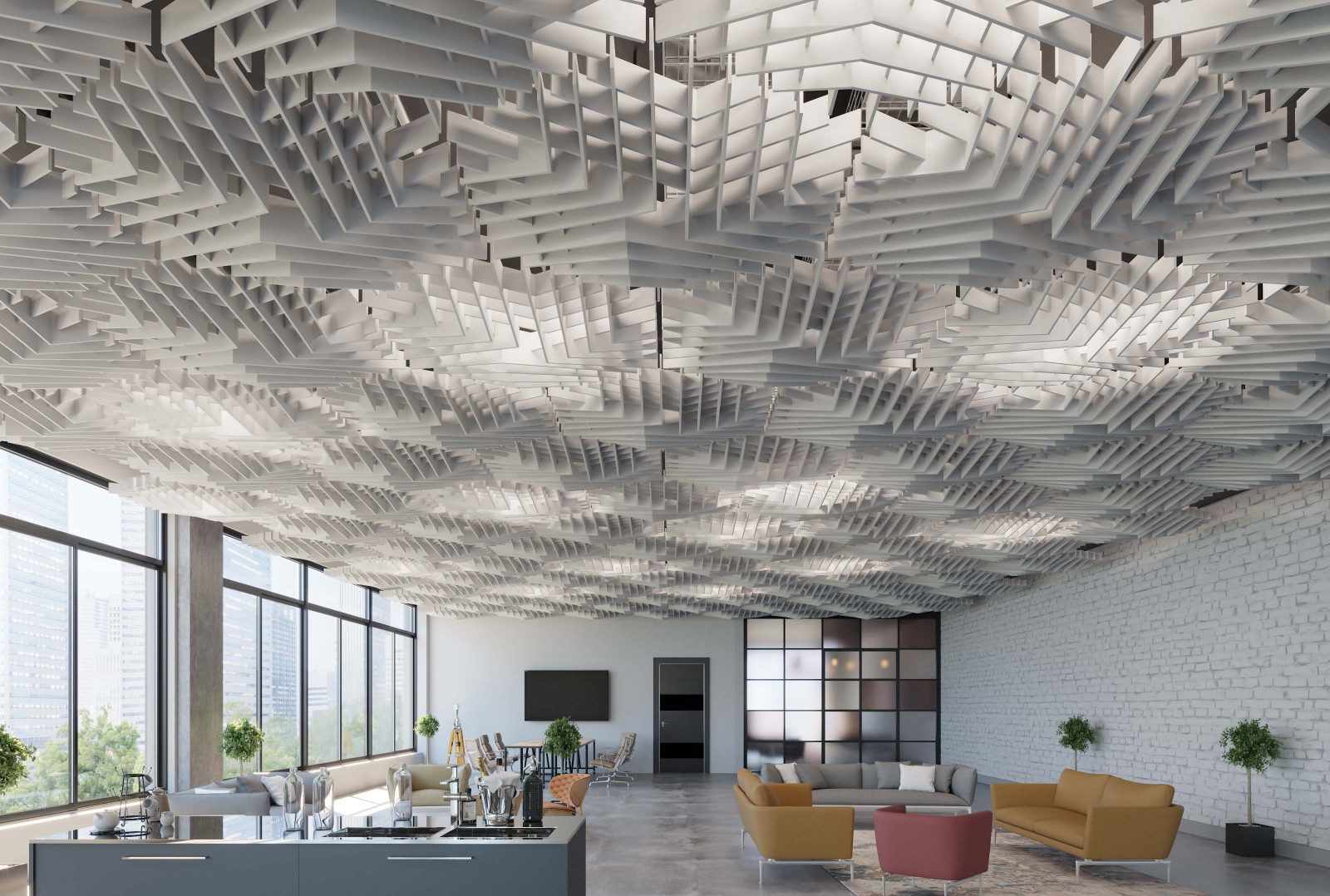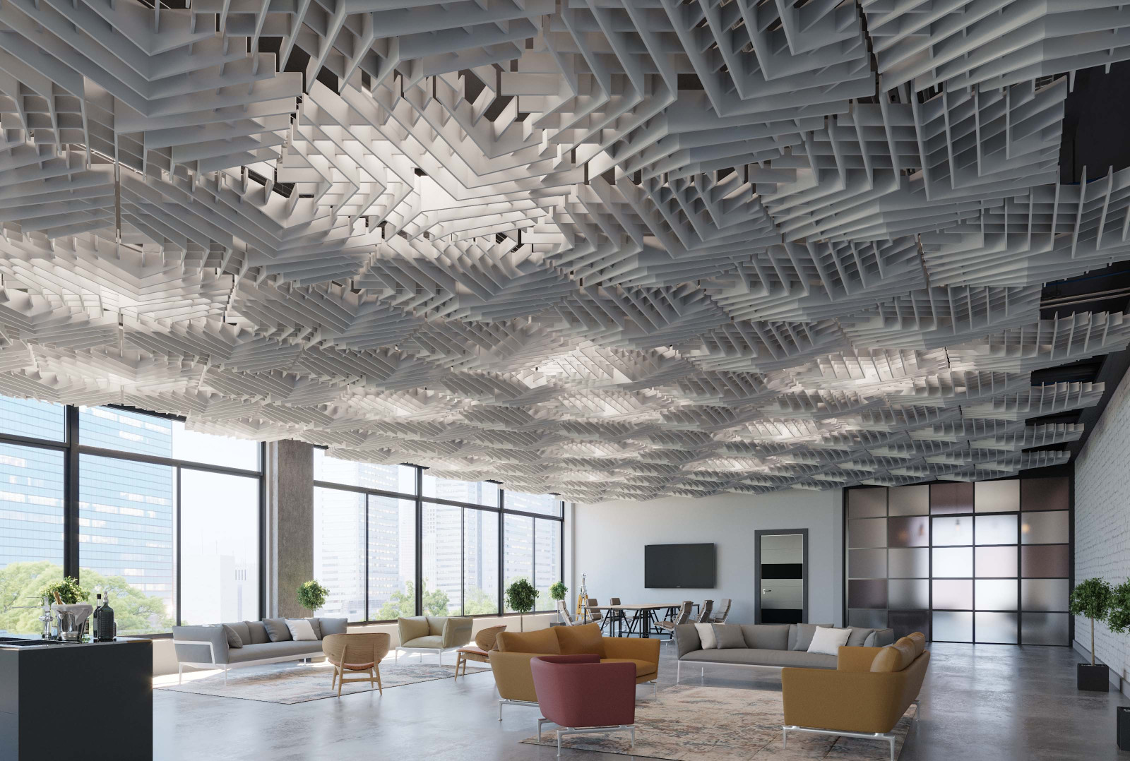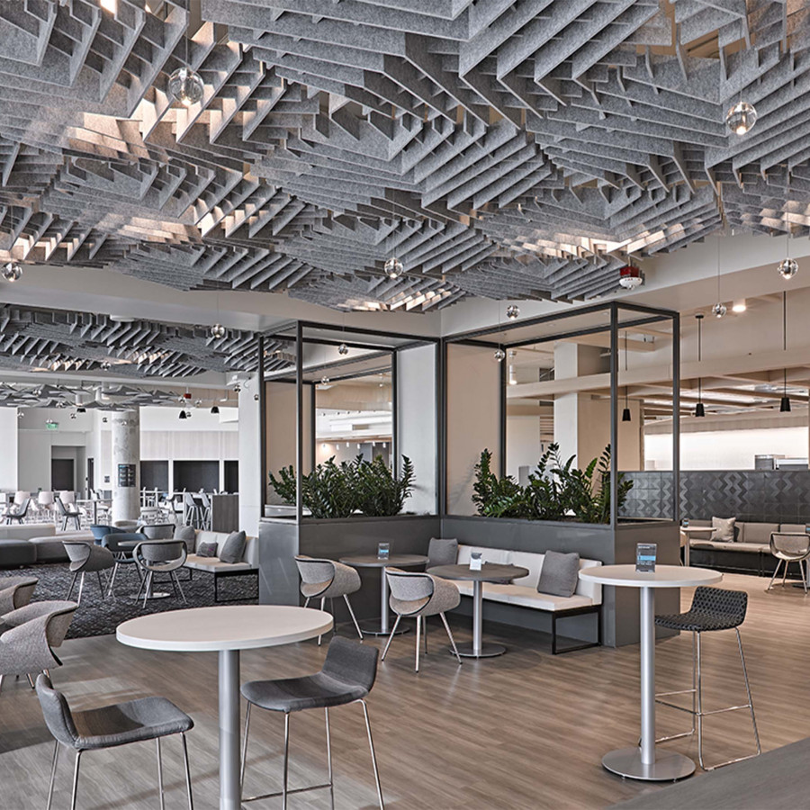 SoftGrid®'s Soft Sound® material reduces the impact of noise from everyday annoyances like ringing, typing, and chatter resulting in a more pleasant and productive environment. SoftGrid®'s material works in concert with the design to help reduce and control reverberations leaving a lasting impression at scales ranging from assembly halls to conference rooms.