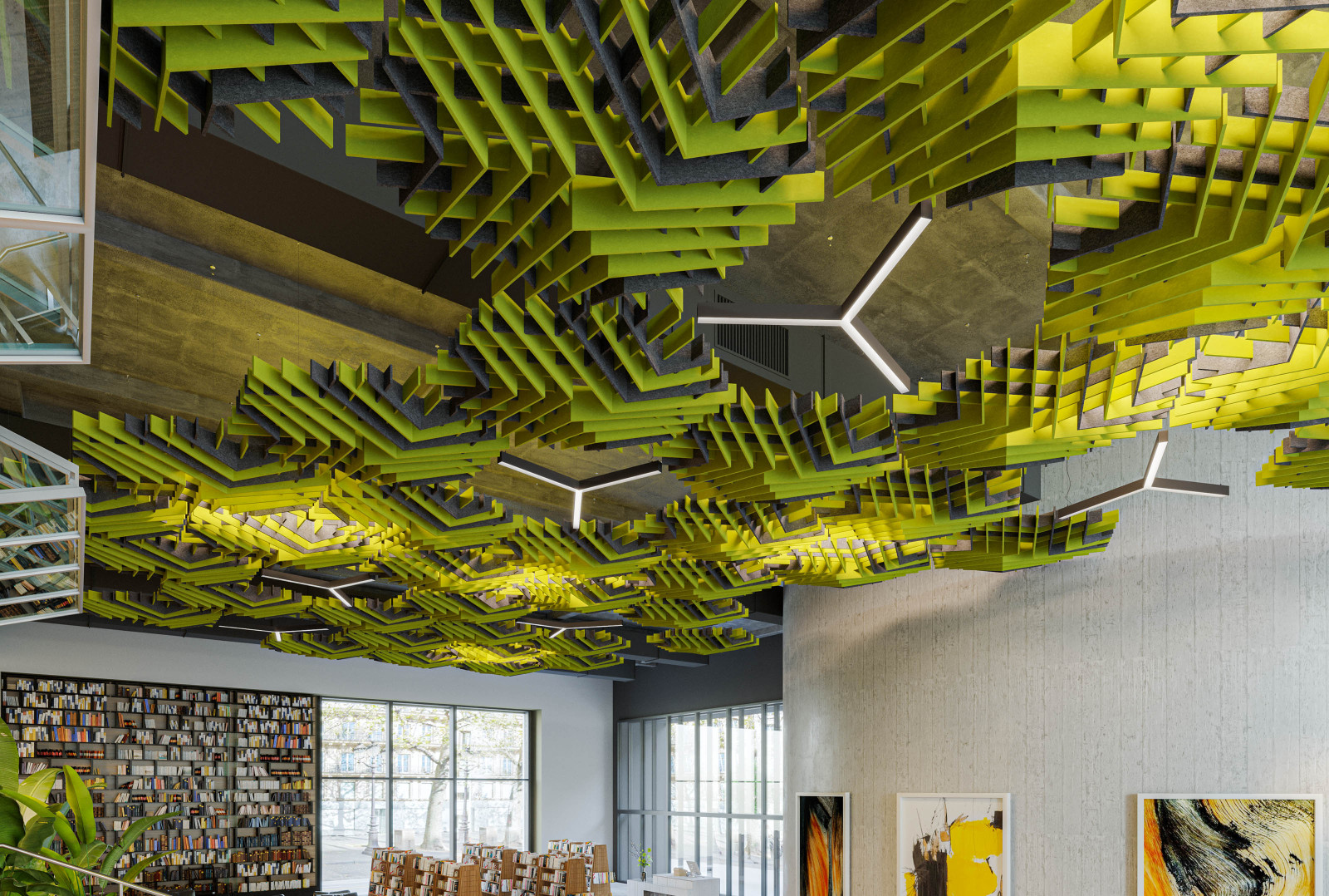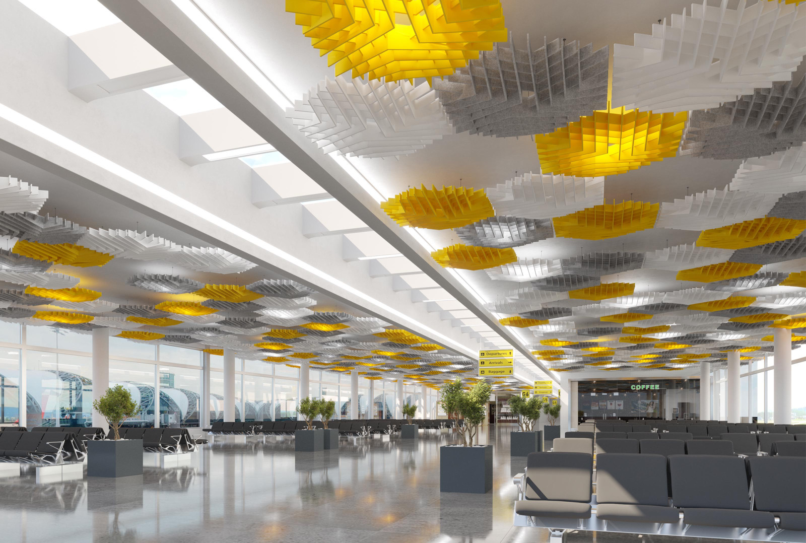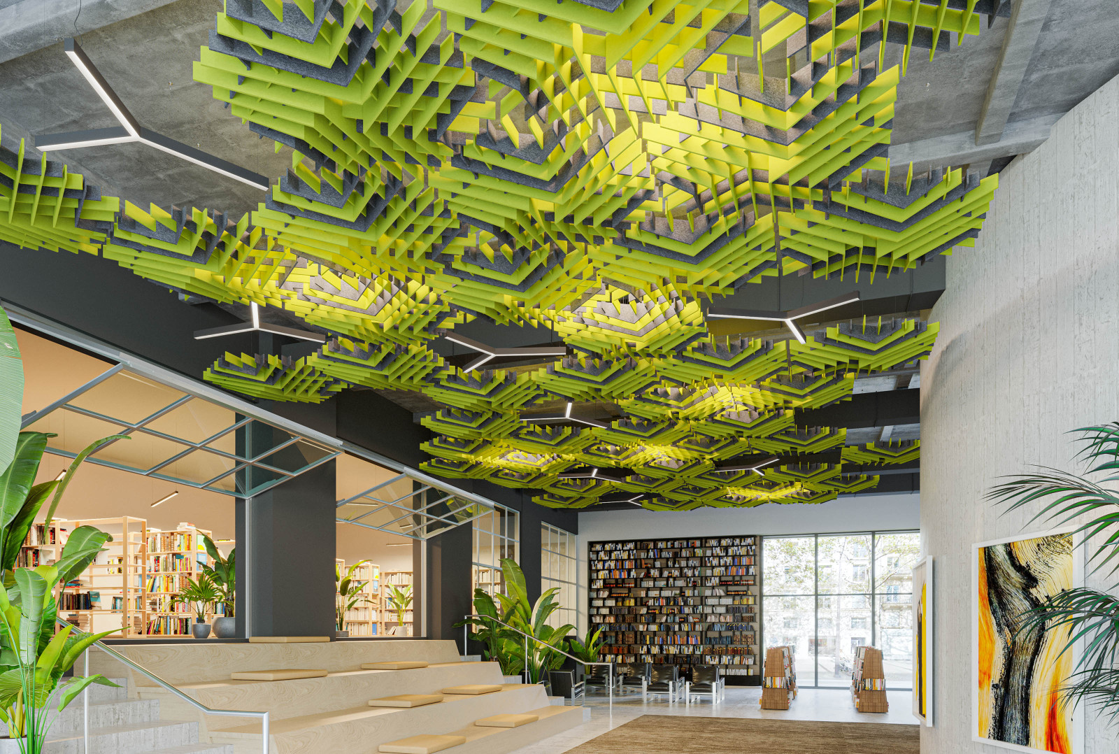SoftGrid®'s Soft Sound® material reduces the impact of noise from everyday annoyances like ringing, typing, and chatter resulting in a more pleasant and productive environment. SoftGrid®'s material works in concert with the design to help reduce and control reverberations leaving a lasting impression at scales ranging from assembly halls to conference rooms.