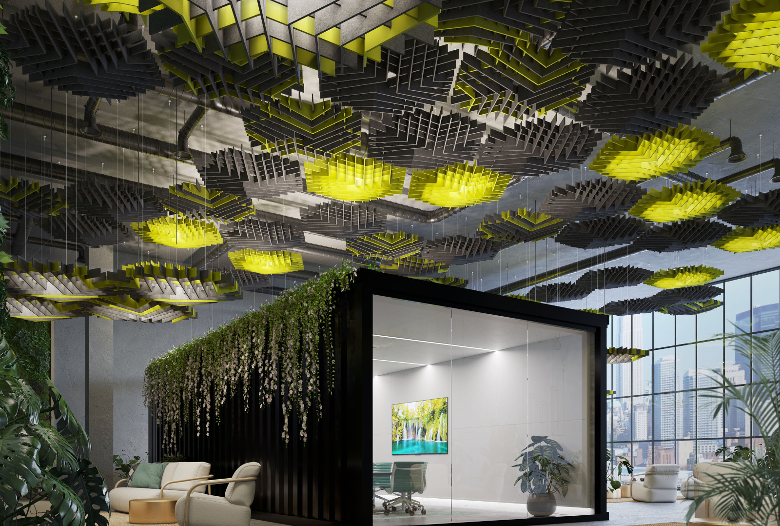 SoftGrid®'s hexagonal modules - Deca, Orbit, and Flux - are compatible with SoundStar®. Create dynamic and transformative design variation in any space.
