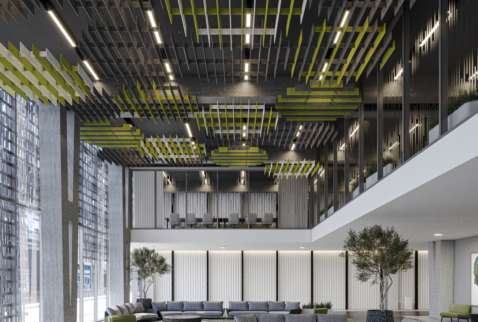 SoftGrid®'s Soft Sound® material reduces the impact of noise from everyday annoyances like ringing, typing, and chatter resulting in a more pleasant and productive environment. SoftGrid®'s material works in concert with the design to help reduce and control reverberations leaving a lasting impression at scales ranging from assembly halls to conference rooms.