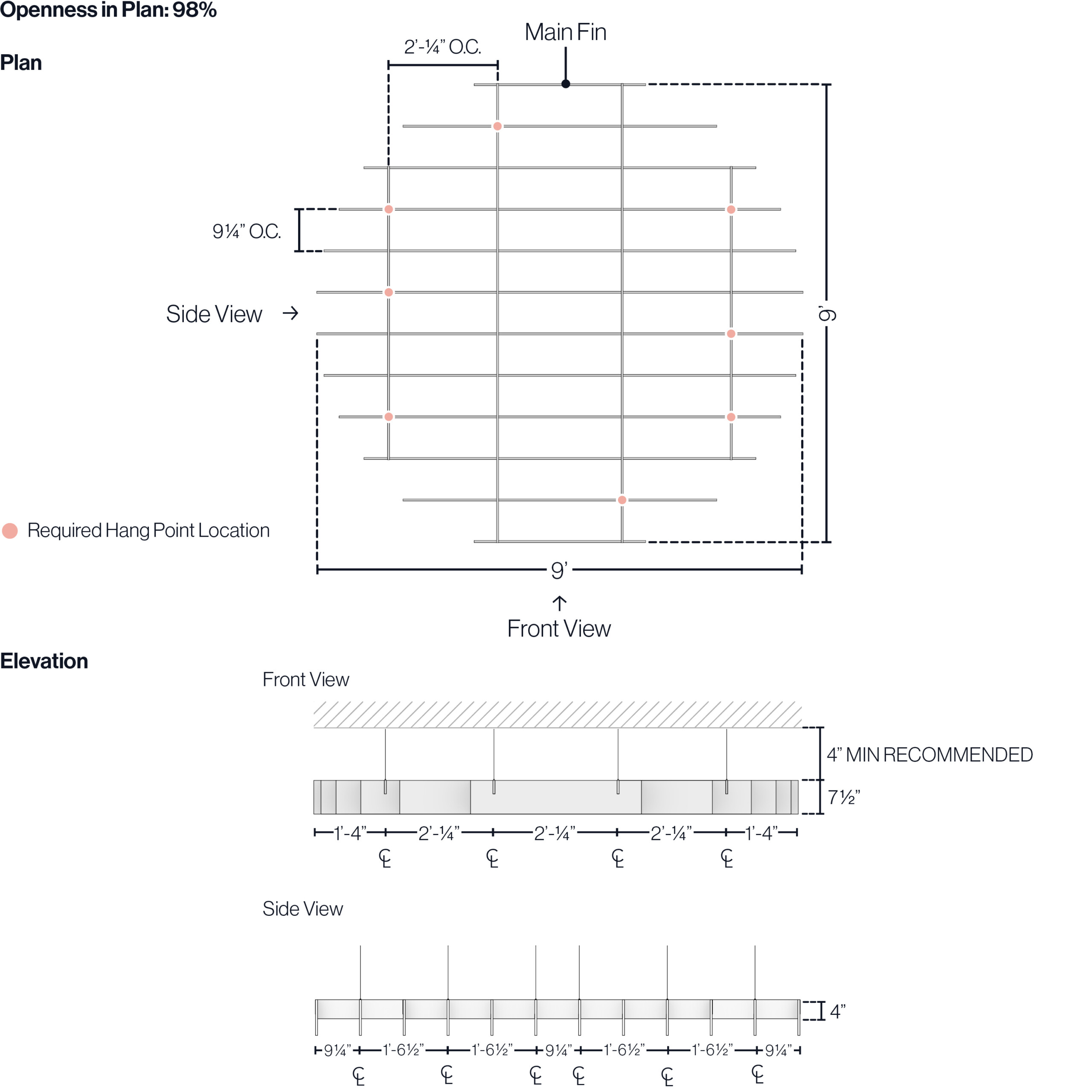 SoftGrid® modules can be trimmed down to a minimum of four fin intersections. By rearranging our adjustable hangers, we make it easy for you to specify standard modules that can be easily field-modified around anticipated and unforeseen site conditions during install.