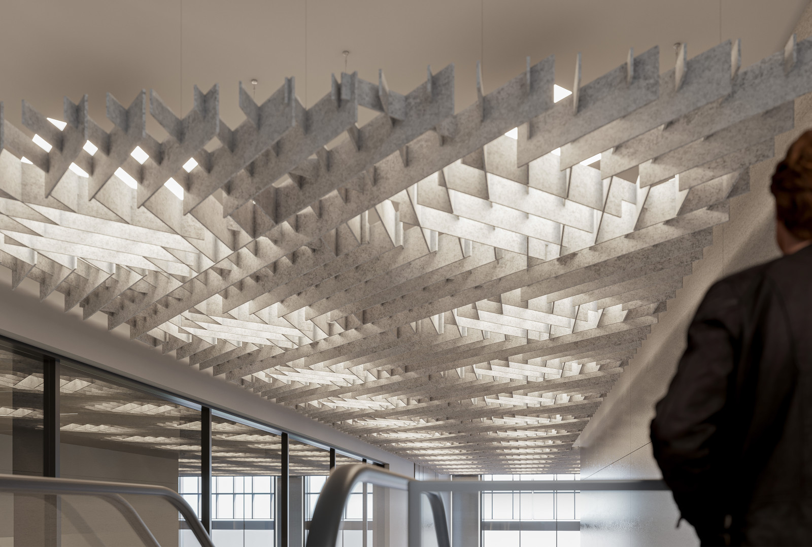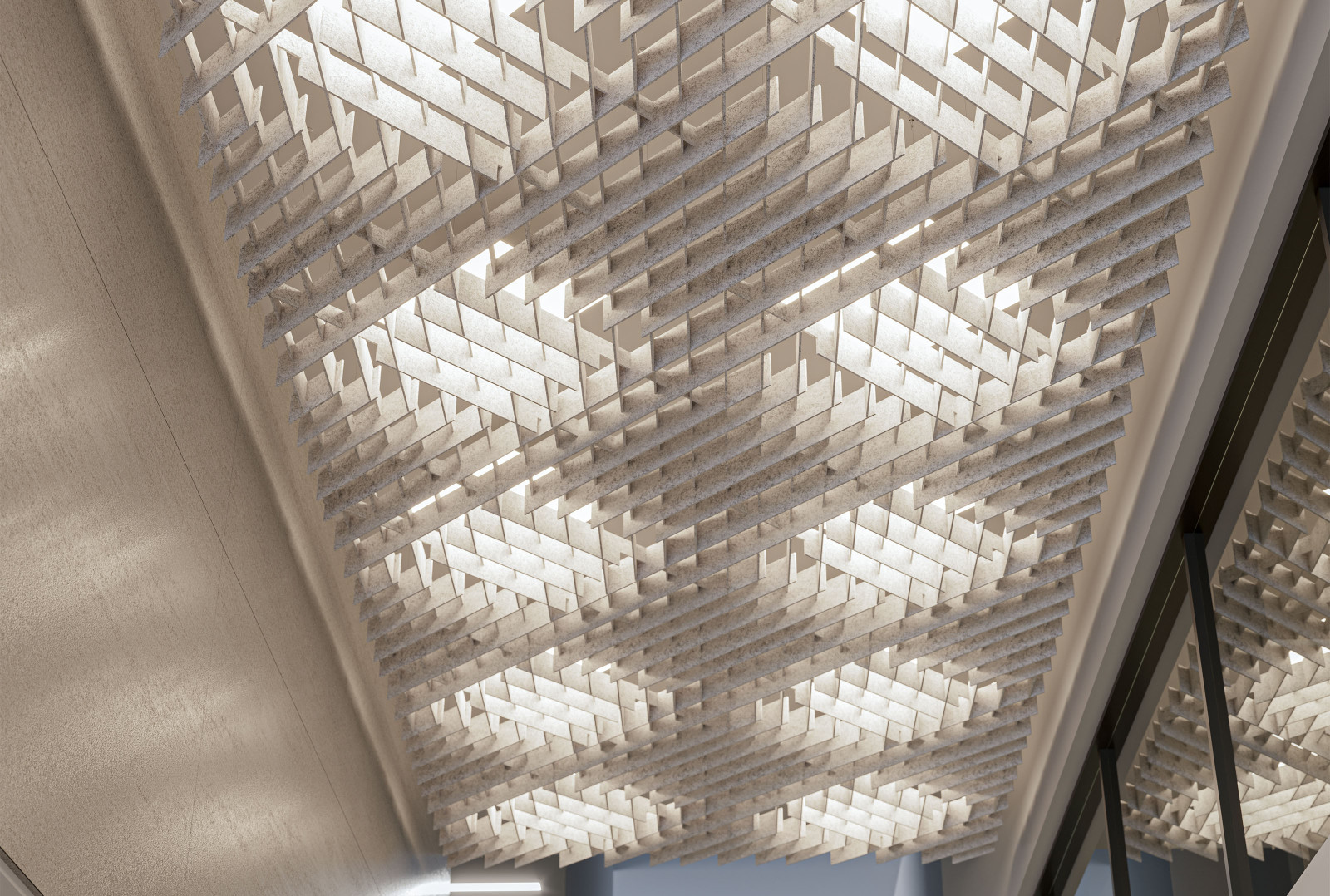 SoftGrid®'s Soft Sound® material reduces the impact of noise from everyday annoyances like ringing, typing, and chatter resulting in a more pleasant and productive environment. SoftGrid®'s material works in concert with the design to help reduce and control reverberations leaving a lasting impression at scales ranging from assembly halls to conference rooms.