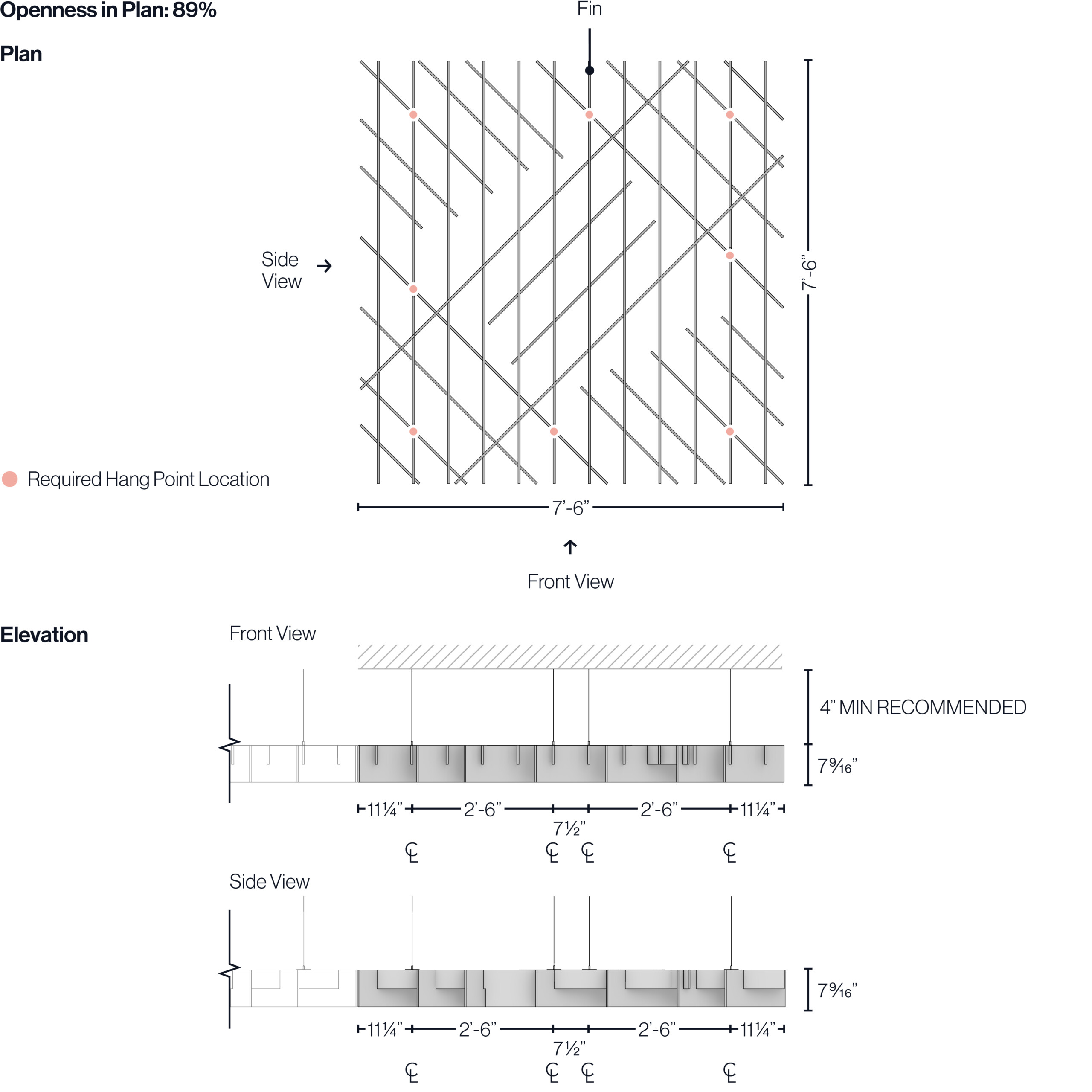 SoftGrid® modules can be trimmed down to a minimum of four fin intersections. By rearranging our adjustable hangers, we make it easy for you to specify standard modules that can be easily field-modified around anticipated and unforeseen site conditions during install.