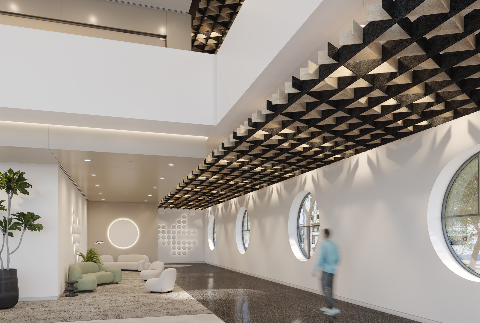 SoftGrid®'s Soft Sound® material reduces the impact of noise from everyday annoyances like ringing, typing, and chatter resulting in a more pleasant and productive environment. SoftGrid®'s material works in concert with the design to help reduce and control reverberations leaving a lasting impression at scales ranging from assembly halls to conference rooms.