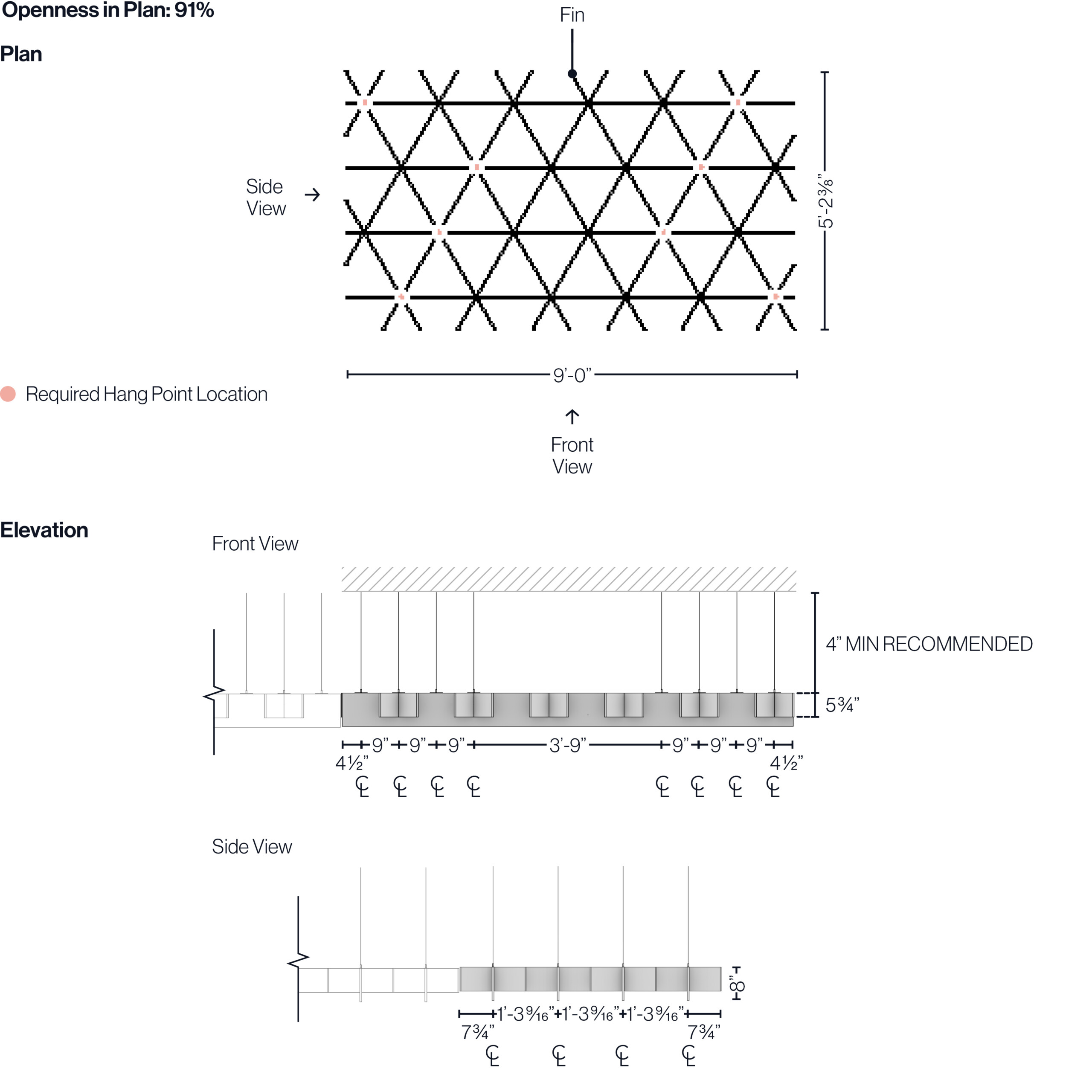 SoftGrid® modules can be trimmed down to a minimum of four fin intersections. By rearranging our adjustable hangers, we make it easy for you to specify standard modules that can be easily field-modified around anticipated and unforeseen site conditions during install.