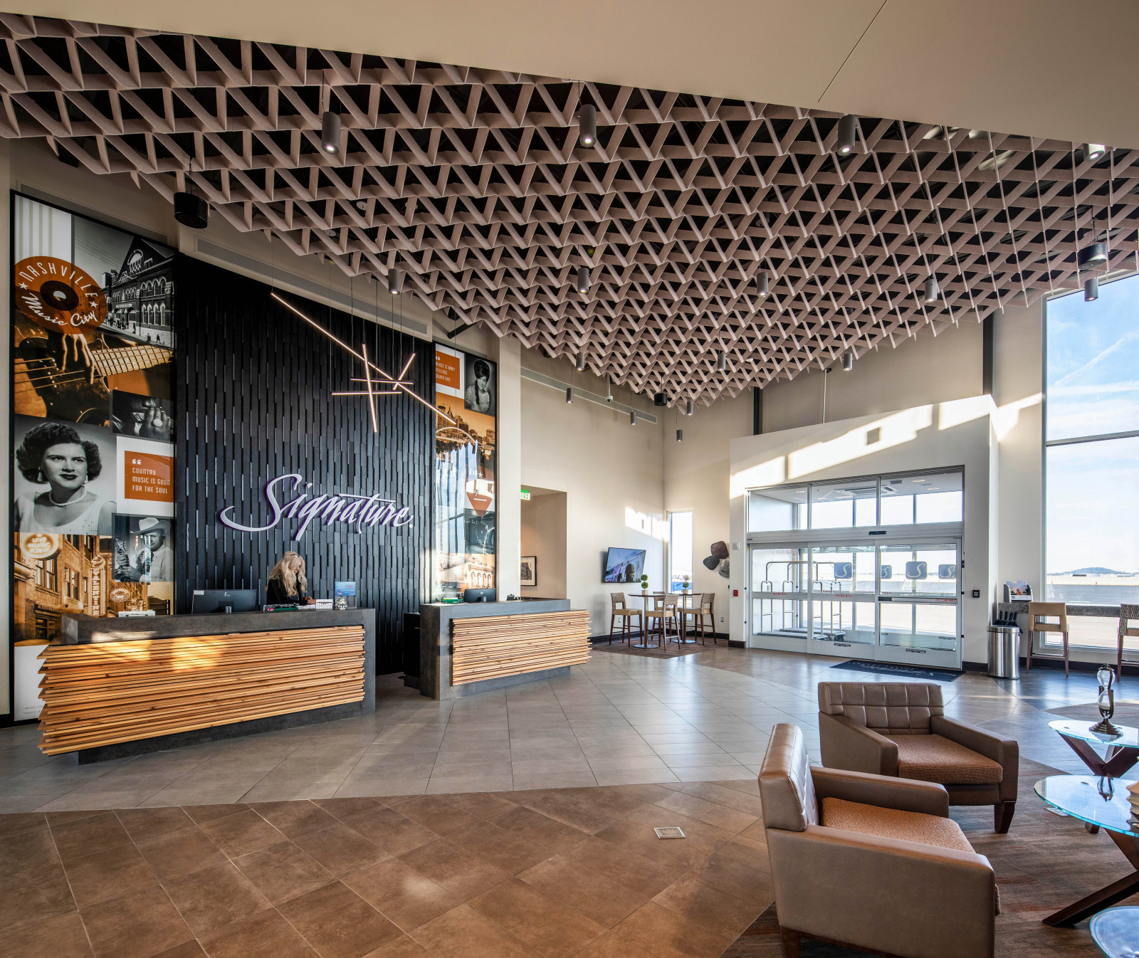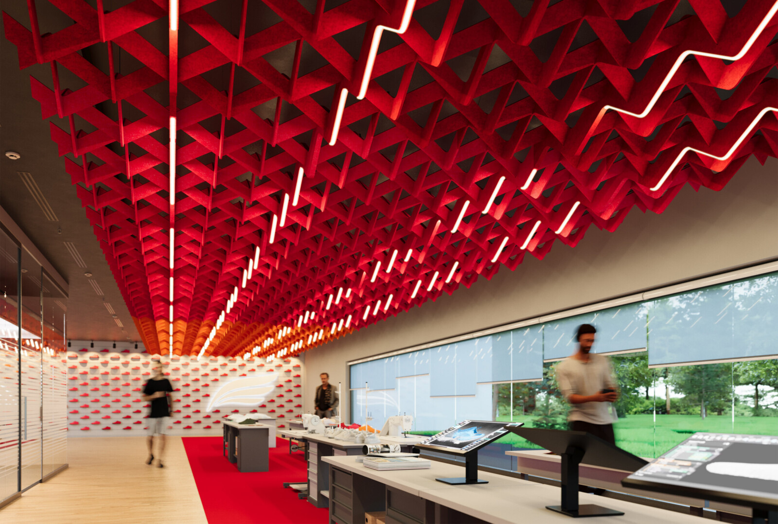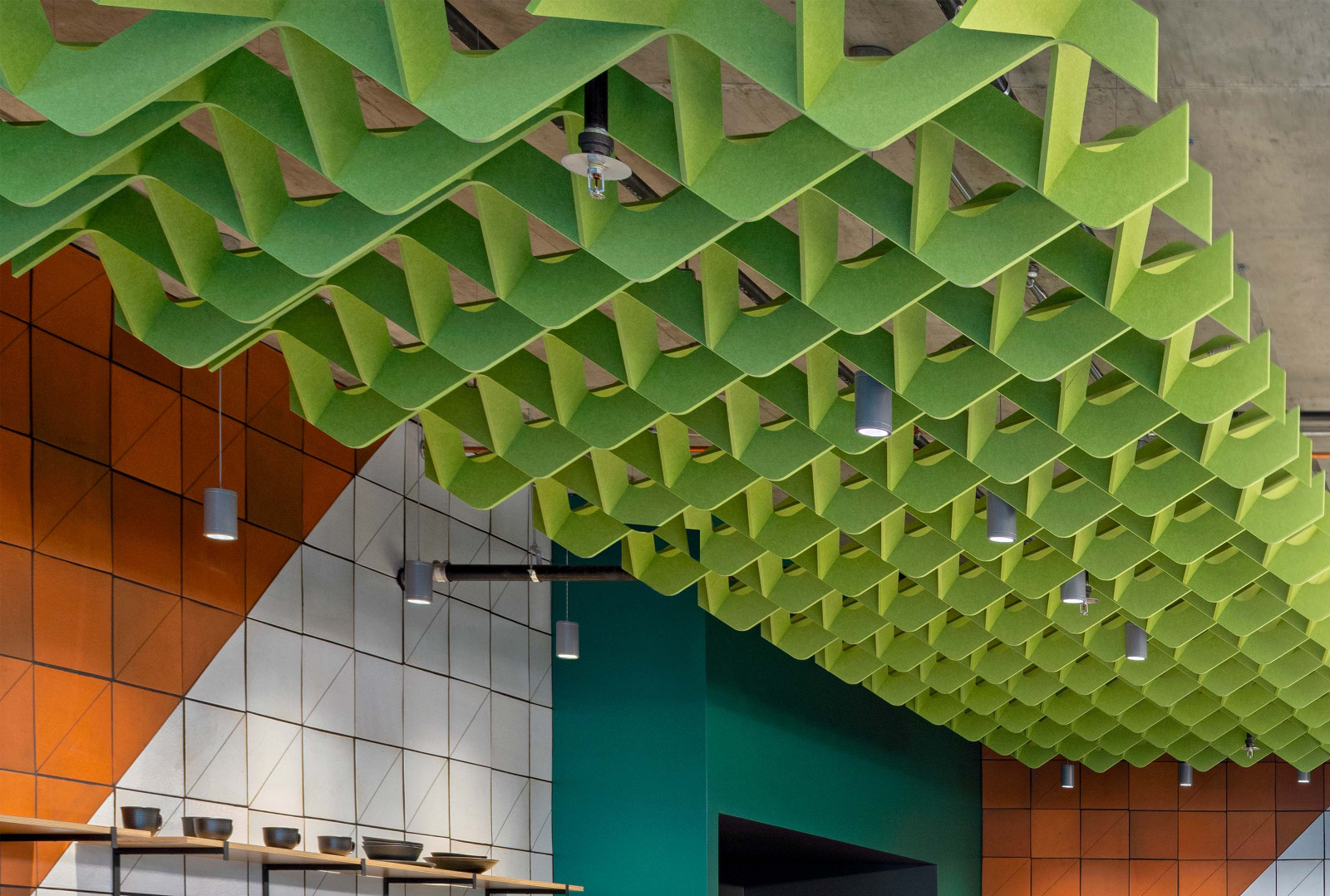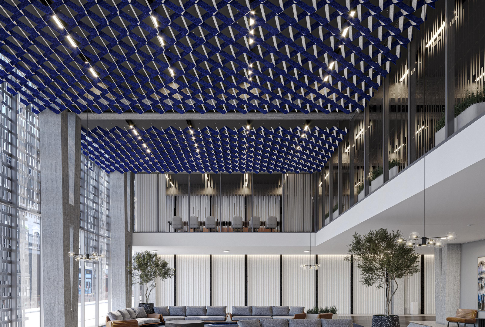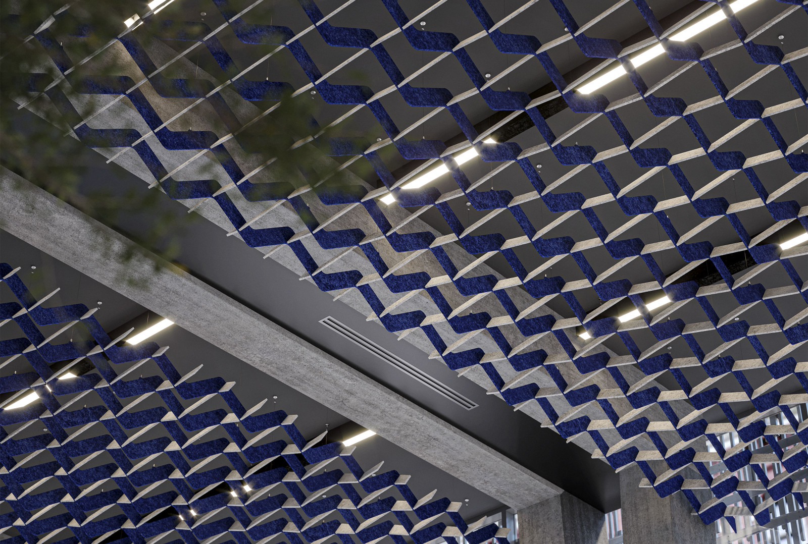 SoftGrid®'s Soft Sound® material reduces the impact of noise from everyday annoyances like ringing, typing, and chatter resulting in a more pleasant and productive environment. SoftGrid®'s material works in concert with the design to help reduce and control reverberations leaving a lasting impression at scales ranging from assembly halls to conference rooms.