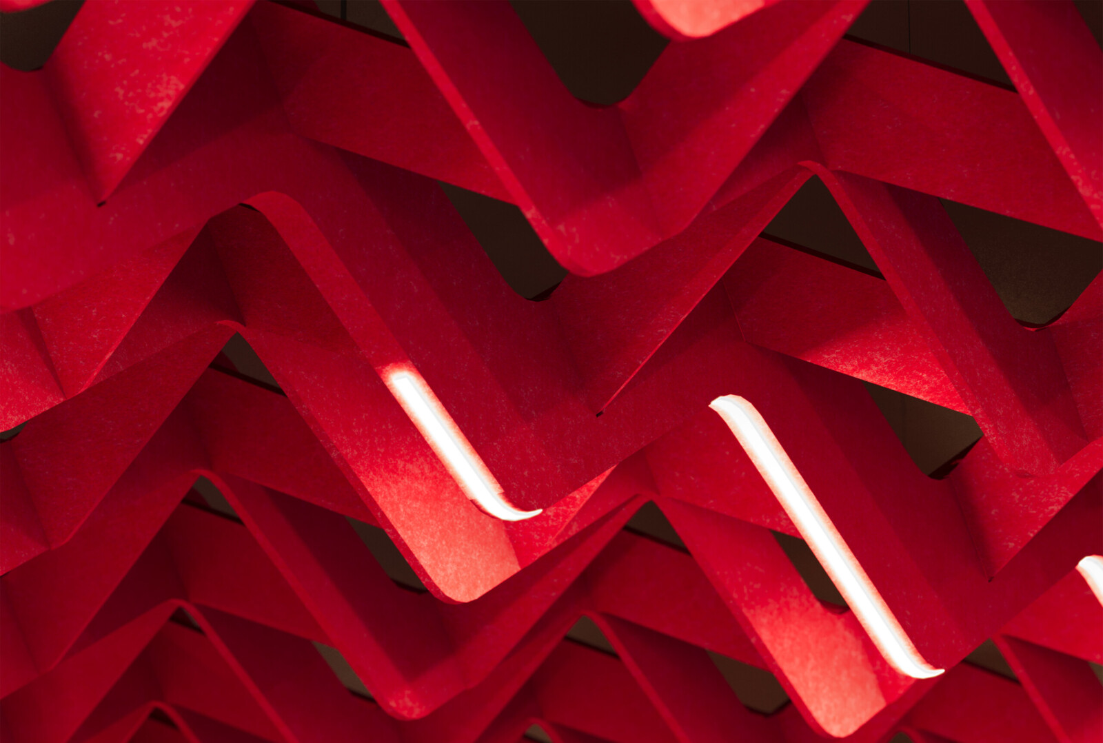 Wave’s acoustic ceiling modules follow their namesake and create a wave pattern that flows easily across your ceiling. You can have a wave that encompasses a whole room or just a small area, thanks to the easy connection of the modules. And with our Soft Sound® material, you can get acoustic support right where you want it. And now, for larger jobs, with the addition of SoftGrid® Max options, you can do it all while maximizing value and minimizing the impact on the environment. Optional accessories include integrated lighting, bringing acoustics and illumination together in one package.
