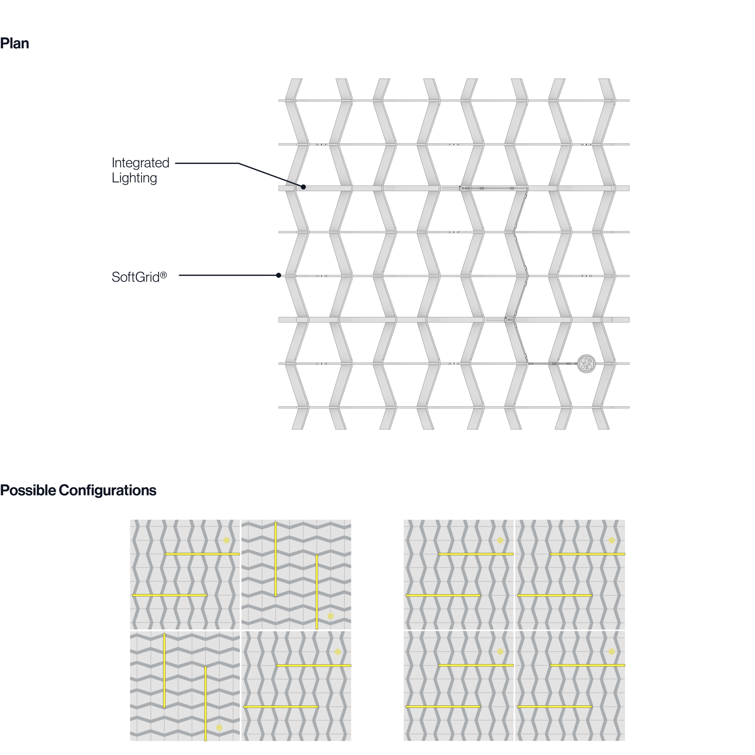 SoftGrid®'s open design makes integrating systems above or below the modules simple and feasible. Easily removable fins and open structure makes accessing lights, HVAC, rigging points, plumbing, AV equipment, and life safety systems easy for your maintenance team.