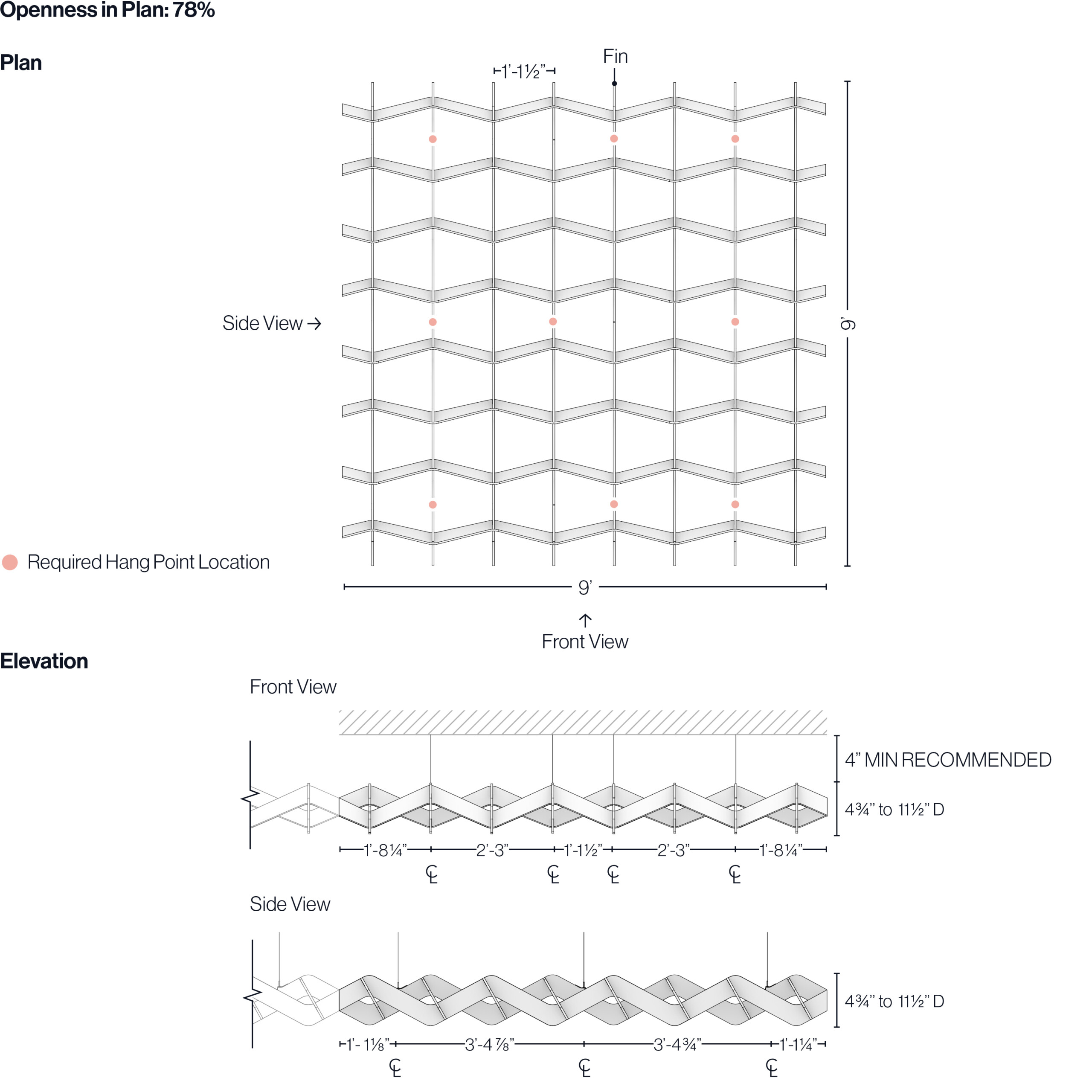 SoftGrid® modules can be trimmed down to a minimum of four fin intersections. By rearranging our adjustable hangers, we make it easy for you to specify standard modules that can be easily field-modified around anticipated and unforeseen site conditions during install.