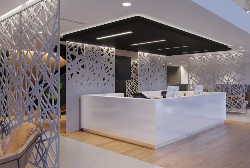 SoftScreen®'s Soft Sound® material reduces noise from everyday annoyances like ringing, typing, and chatter resulting in a more pleasant and productive environment. SoftScreen®'s material works in concert with wall coverage or partition capabilities and diffuses sound while enhancing wellness in spaces from busy office environments to soothing waiting rooms.