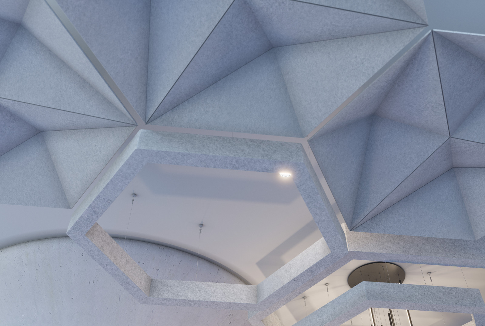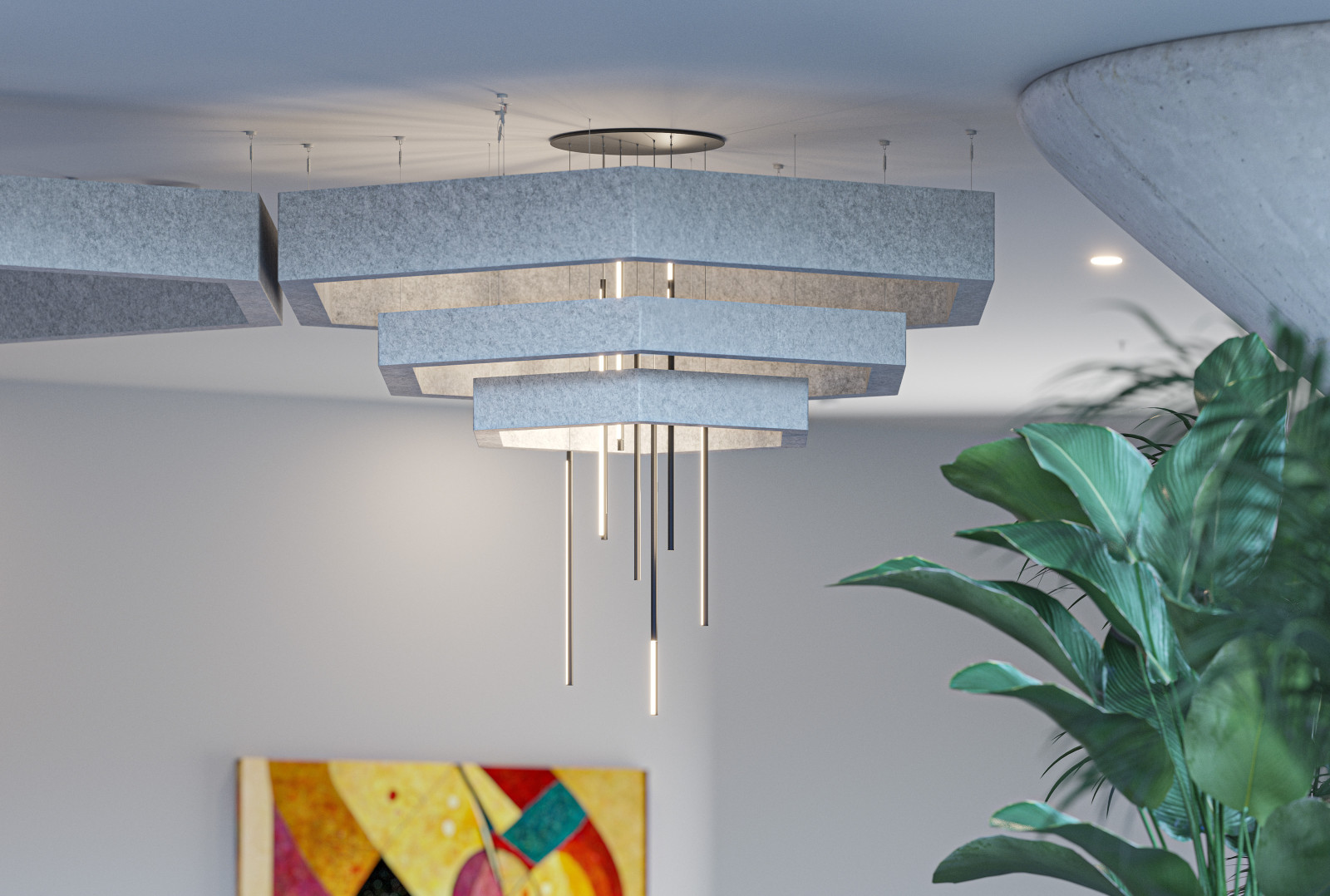 SoftShapes® Hex brings the best of Arktura’s versatility and Soft Sound® acoustics to match the extent of your creative imagination. Complete one-of-a-kind designs not previously attainable with these acoustic clouds available in multi-sided form factors. Install in tandem with other geometric Arktura modules such as SoundStar® and SoftGrid® for truly unique configurations.