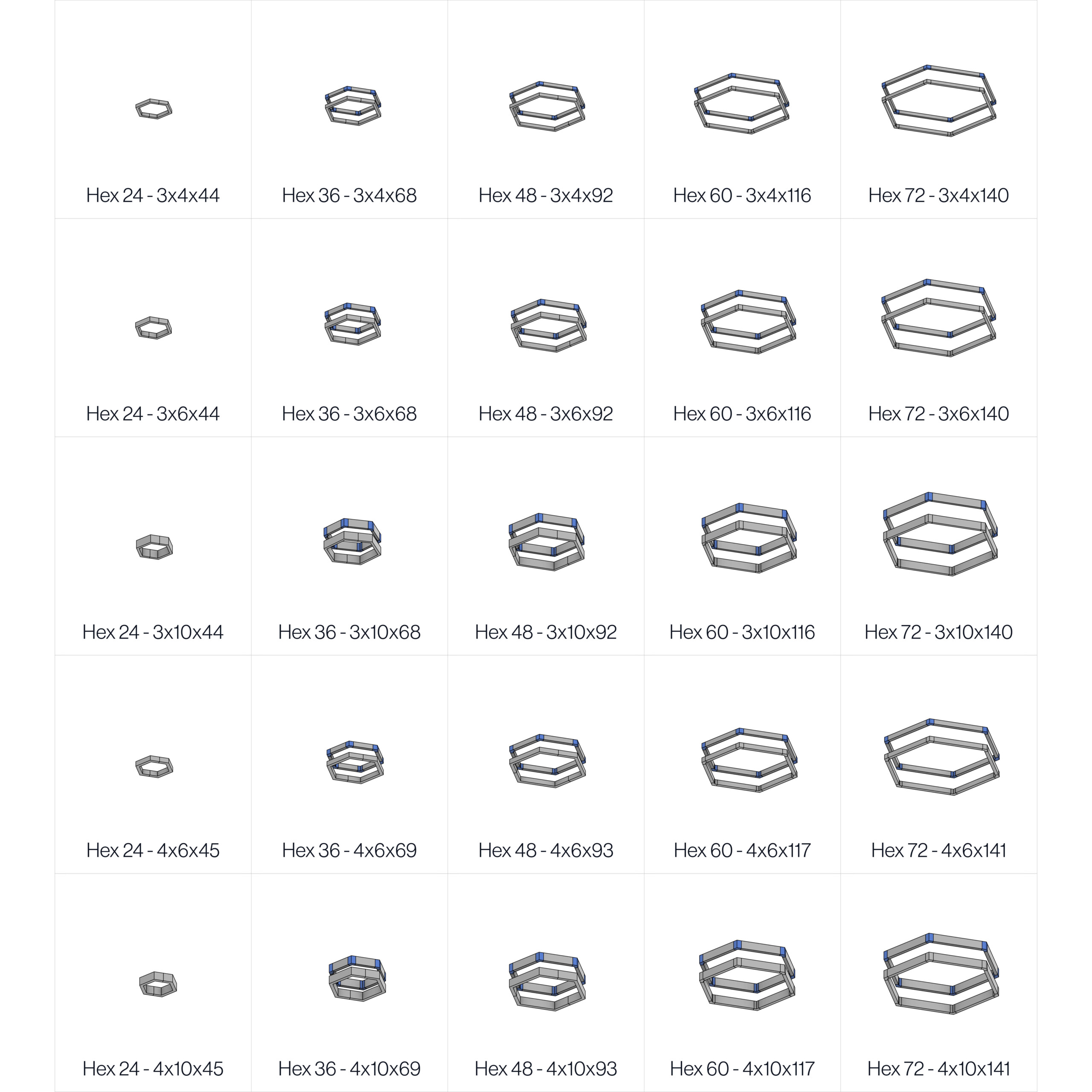 SoftShapes® Tri, Quad, and Hex each offers a wide range of sizes and profiles to choose from. Pick the combination that works best for your design.