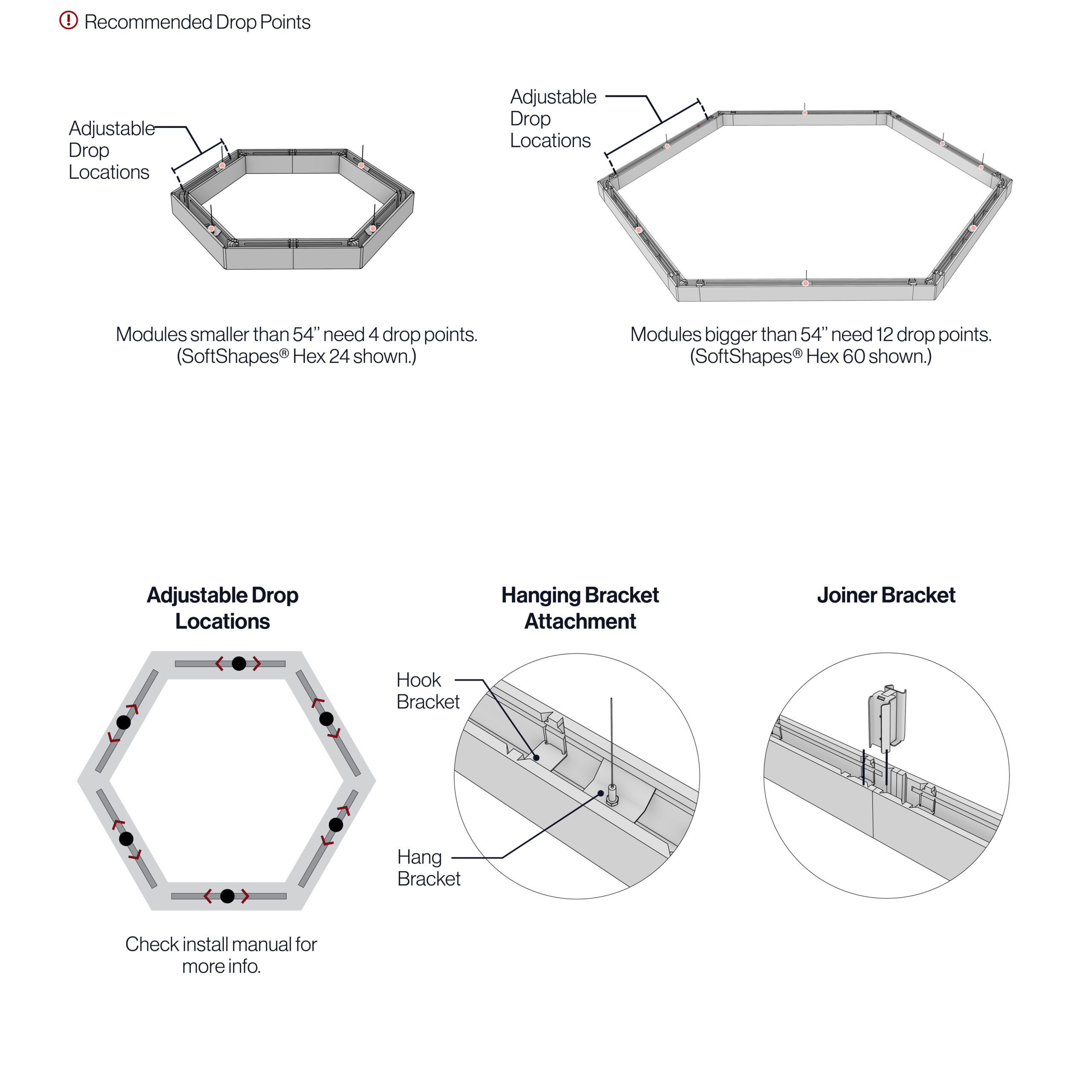 SoftShapes® features adjustable drop locations and five methods of attachment for ease of installation.