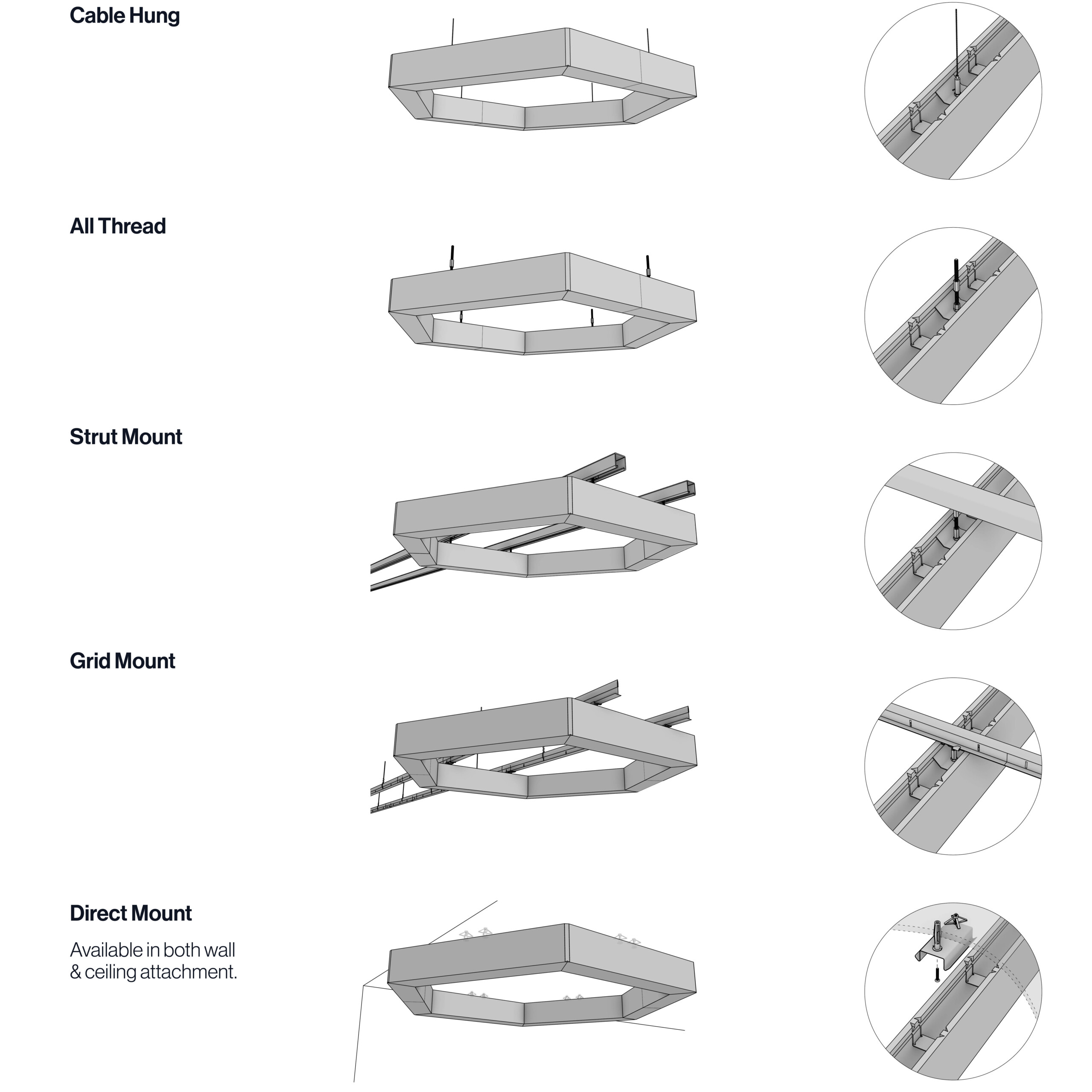 - 1/16" Stainless Cable Hung, All Thread, Strut Mount, Grid Mount, Direct Mount