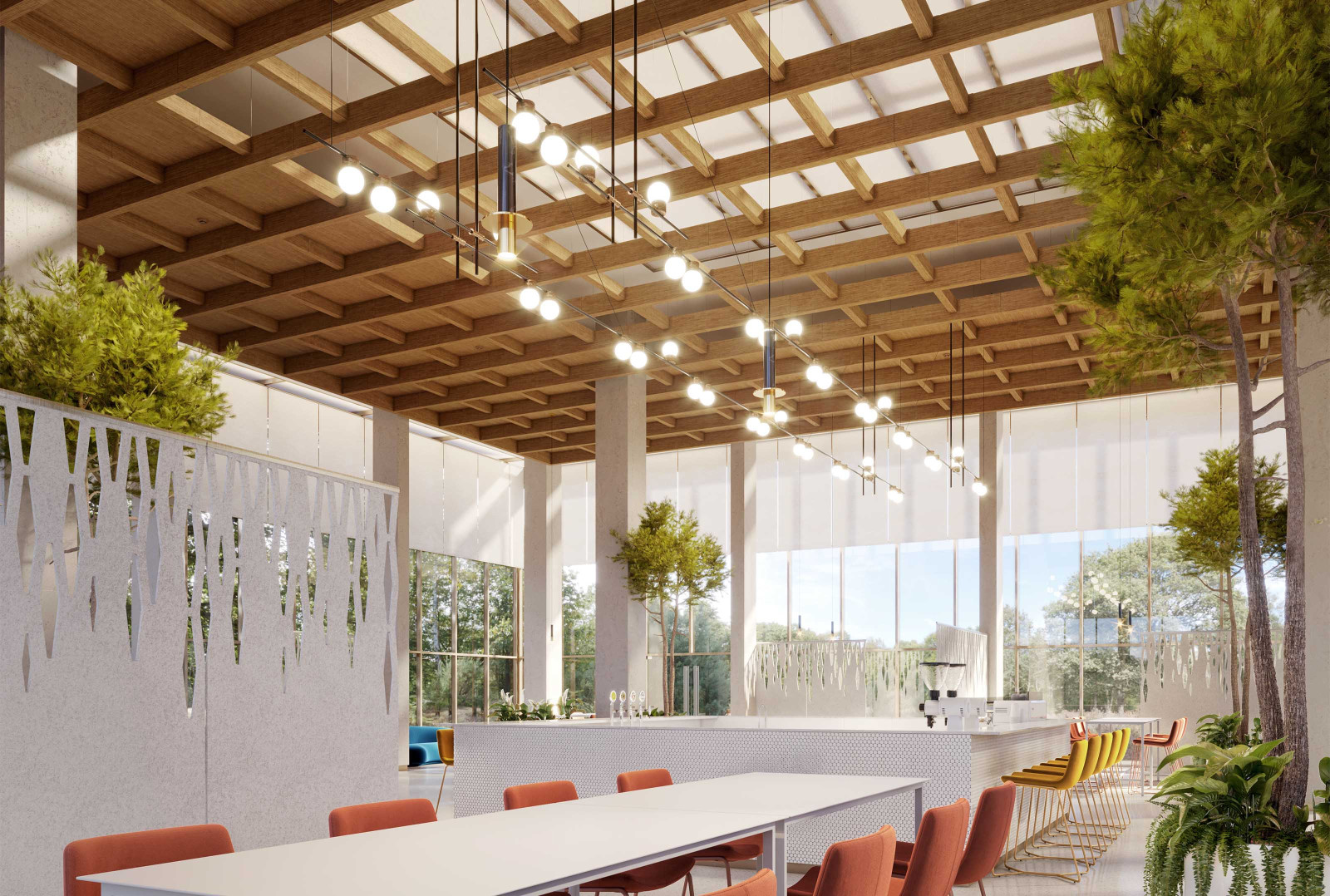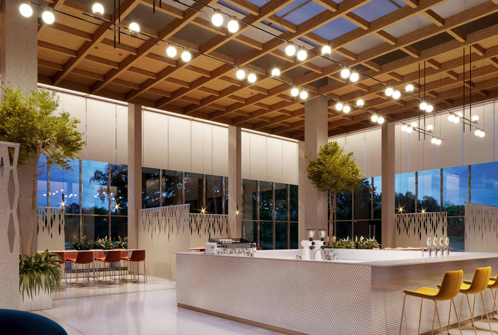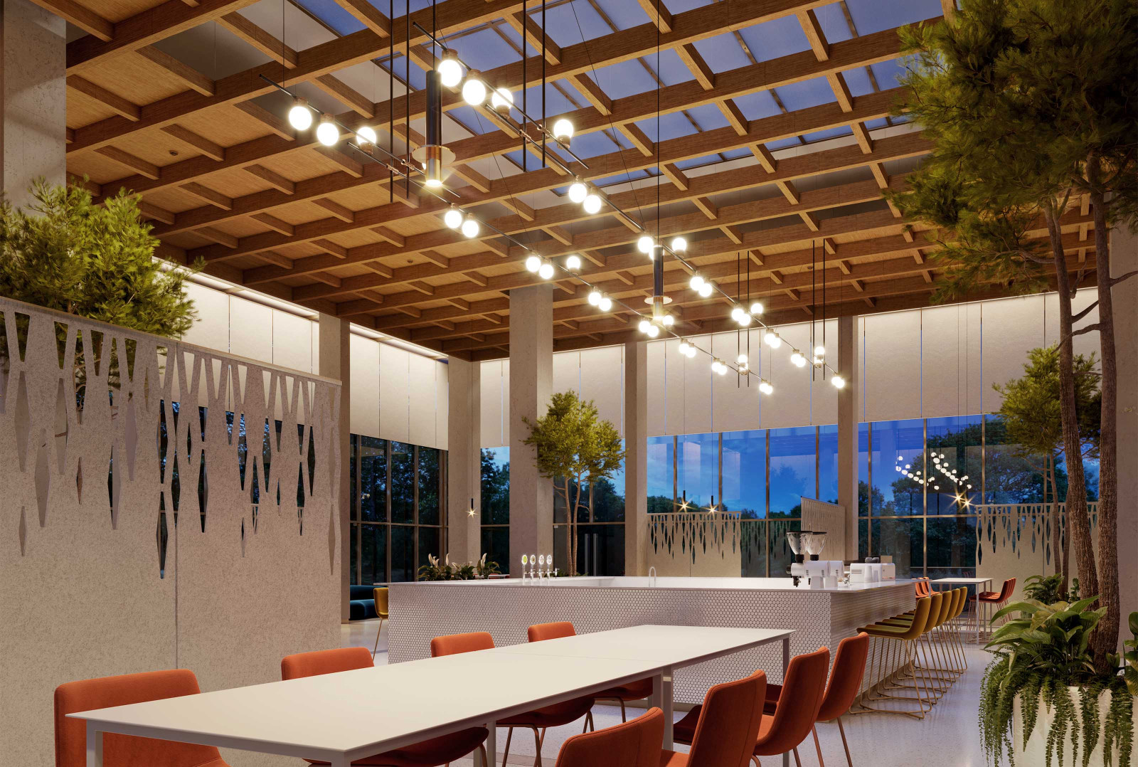 SoftSpan® 48A is a versatile ceiling baffle system that brings the look of closely gridded coffered ceilings or timber trellises to spaces without the weight, while enhancing acoustics and reducing the impact of noise. Add Soft Sound® coffer panels to create an enclosed look and further enhance the acoustics of your space. Fully compatible with SoundBar® acoustic baffle and lighting system.