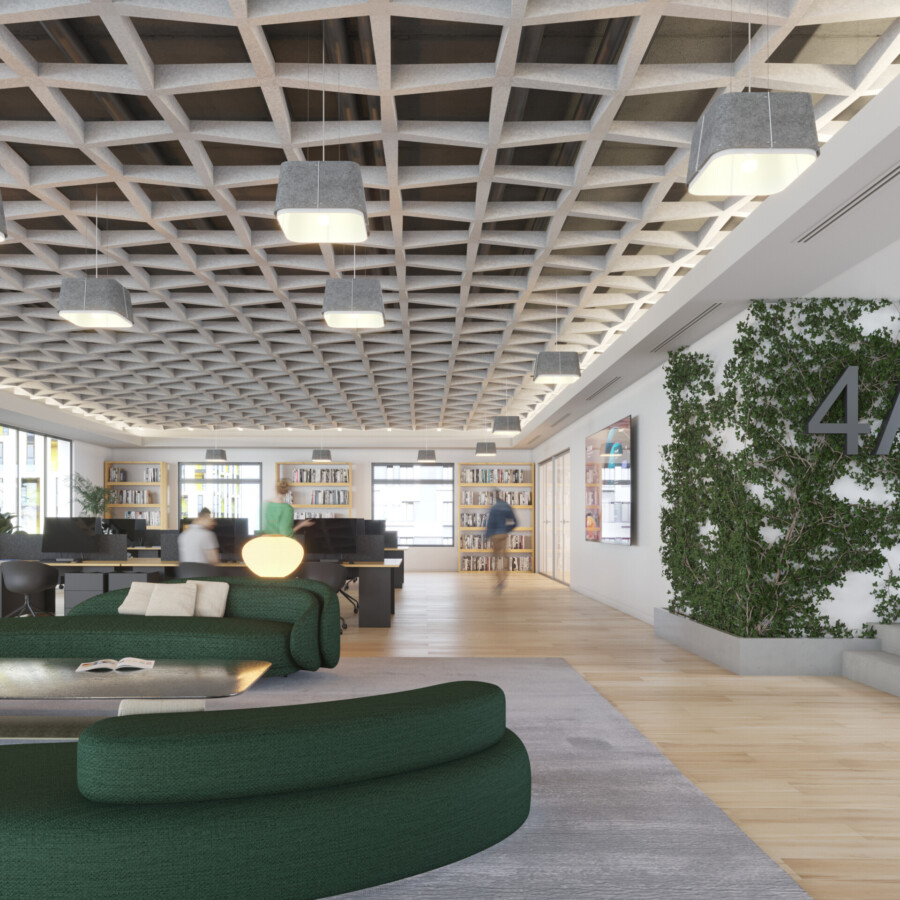 SoftSpan® Taper in Soft Sound® Wood Texture brings the aesthetics of a timber trellis into your space without the weight while also adding acoustic performance.