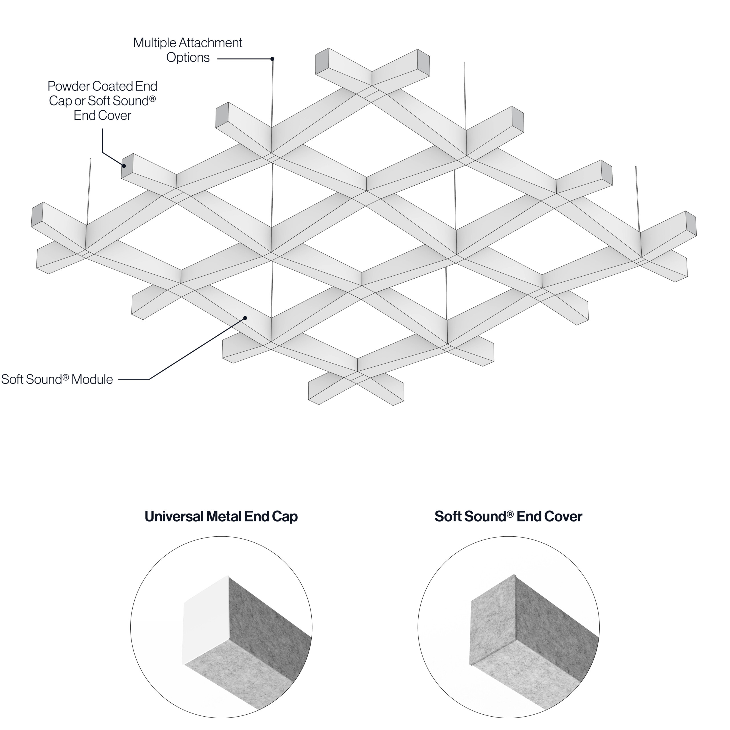 Enhance the acoustic performance of SoftSpan® Taper with Soft Sound® Coffer Panels. Enclose modules with optional perimeter beam and corner modules to expand design possibilities.