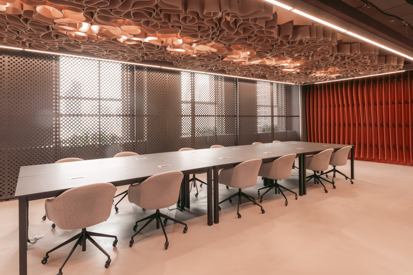 This unique form factor features 12mm Soft Sound® ribs, which support the module, along with 3mm thin Soft Sound® ribbons. These thinner ribbons enable greater curvature and more organic structures in the design. This innovative design not only enhances acoustic performance but also allows for aesthetic versatility, making it a perfect fit for any contemporary space.