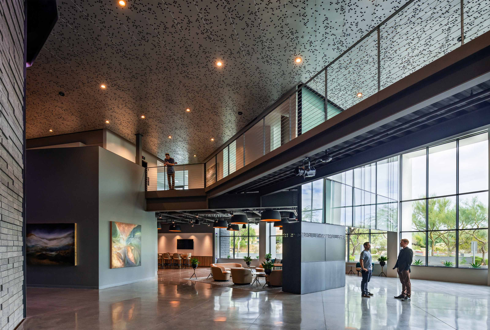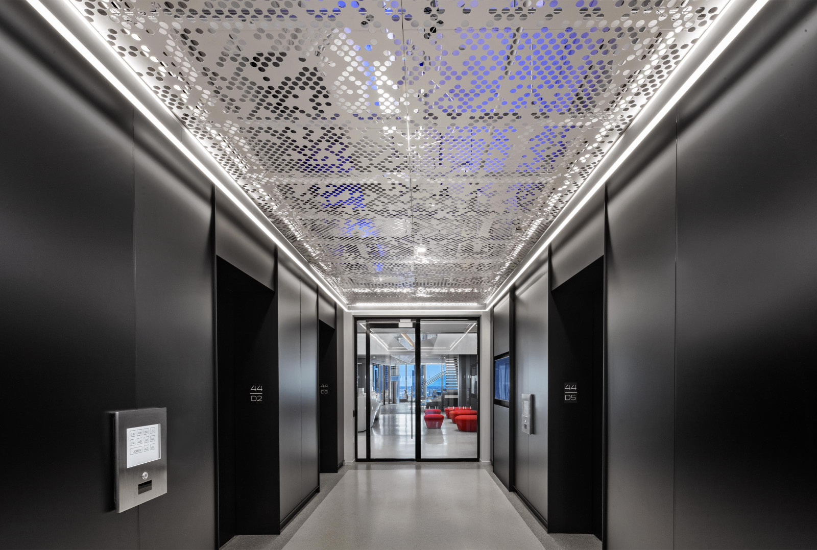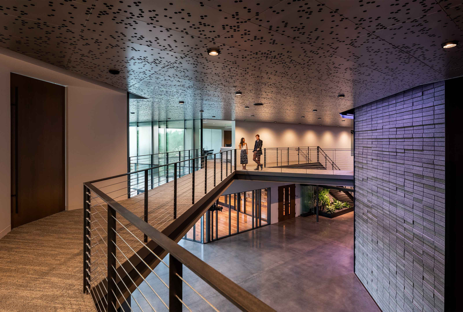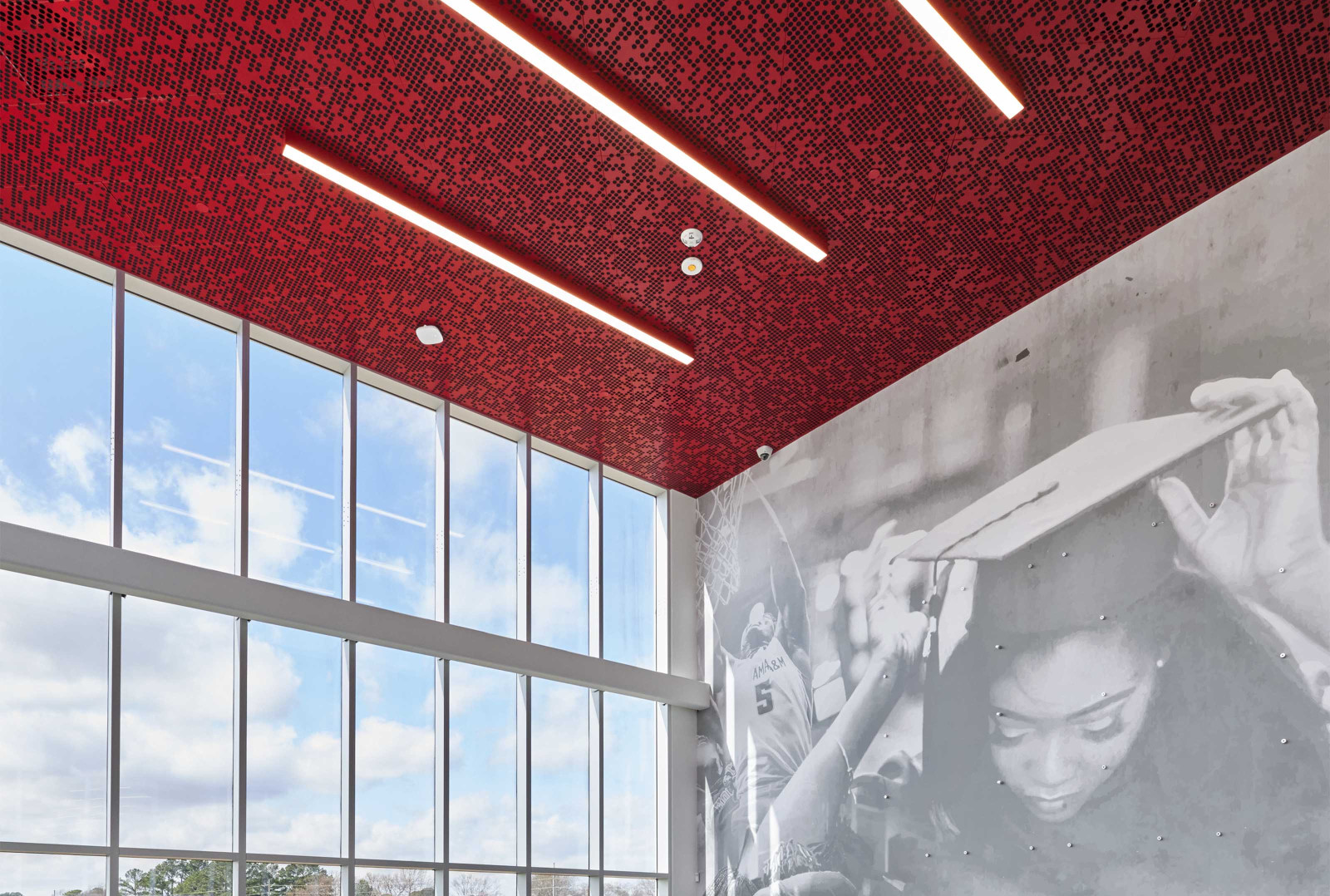 With Cluster, we’ve transformed perforated torsion spring panels into an elegant ceiling-scape. By staggering the location of the holes, we’ve upgraded a standard grid into an eye-catching design that will get viewers talking. Choose from two levels of perforation density: Cluster Dense and Cluster Sparse. Cluster also works with both our optional integrated lighting and Soft Sound® acoustic backer to help you get the right aesthetic — and sound — for your design.