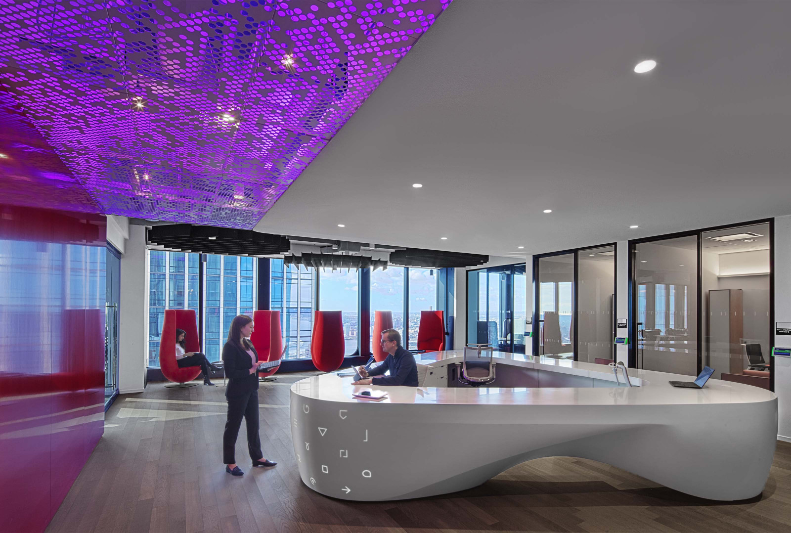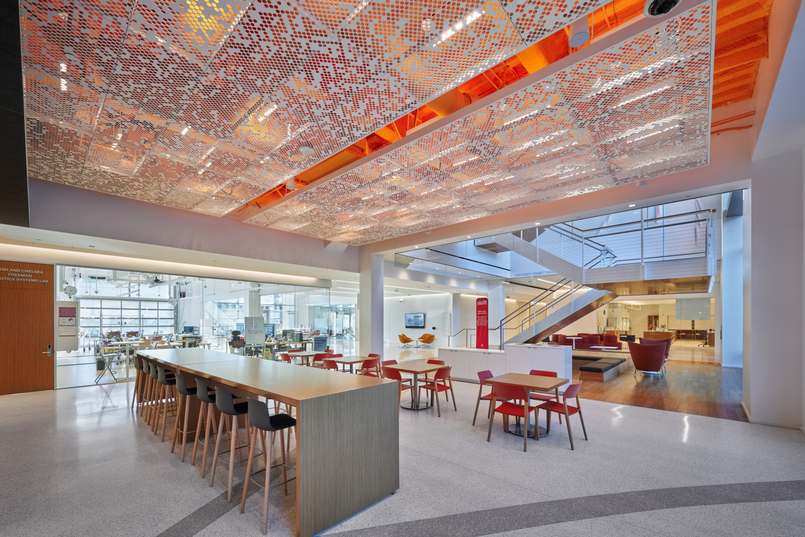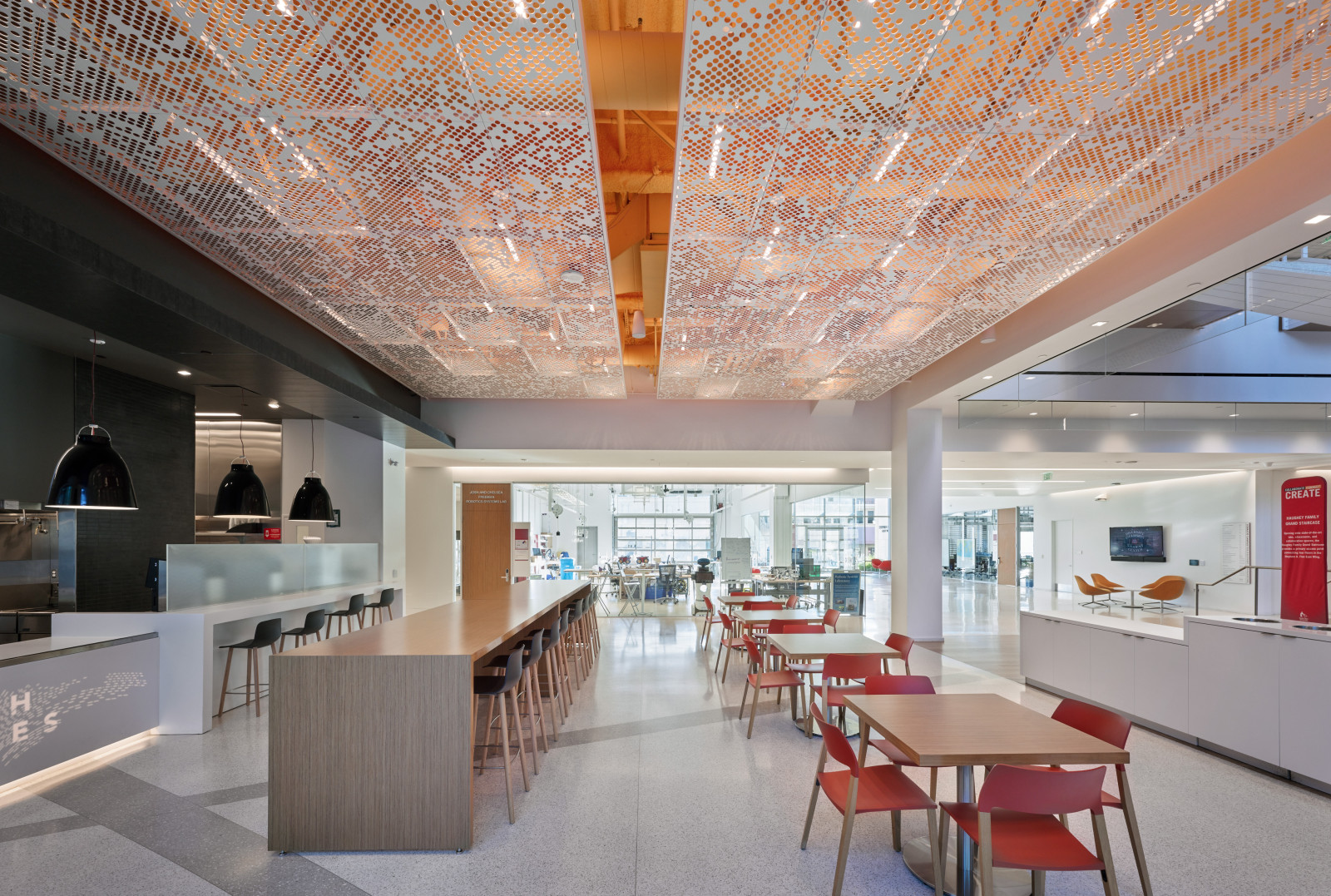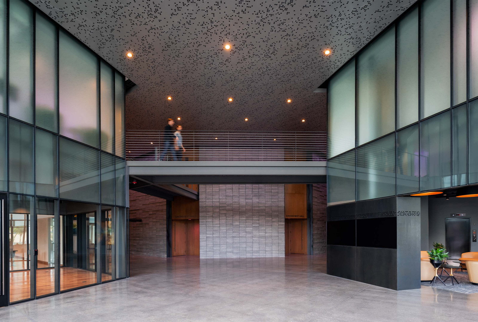 With Cluster, we’ve transformed perforated torsion spring panels into an elegant ceiling-scape. By staggering the location of the holes, we’ve upgraded a standard grid into an eye-catching design that will get viewers talking. Choose from two levels of perforation density: Cluster Dense and Cluster Sparse. Cluster also works with both our optional integrated lighting and Soft Sound® acoustic backer to help you get the right aesthetic — and sound — for your design.