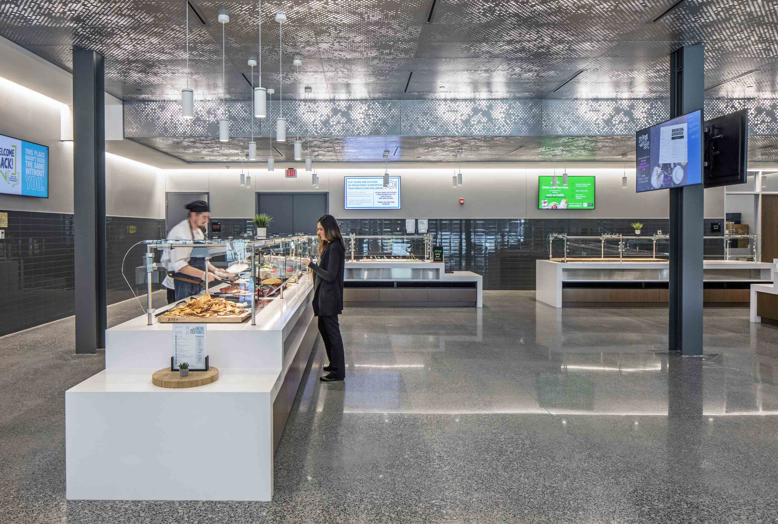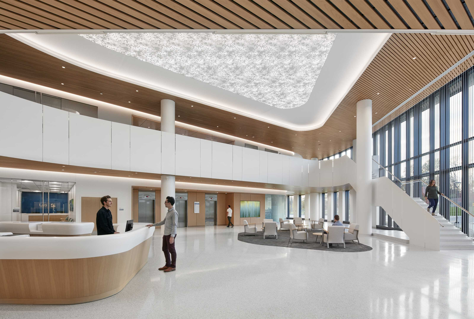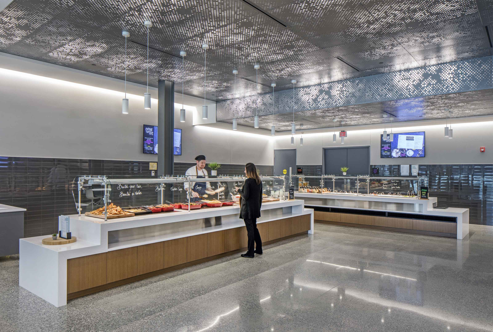 Cumula powder-coated aluminum torsion spring panels take inspiration from a beautiful spring day, giving your design the ephemeral feeling of a cloudy sky. The pattern continues seamlessly from panel to panel, and with the addition of our Soft Sound® backer, you can also reduce the amount of ambient noise. Or try our integrated lighting backer if you want a design that shines.