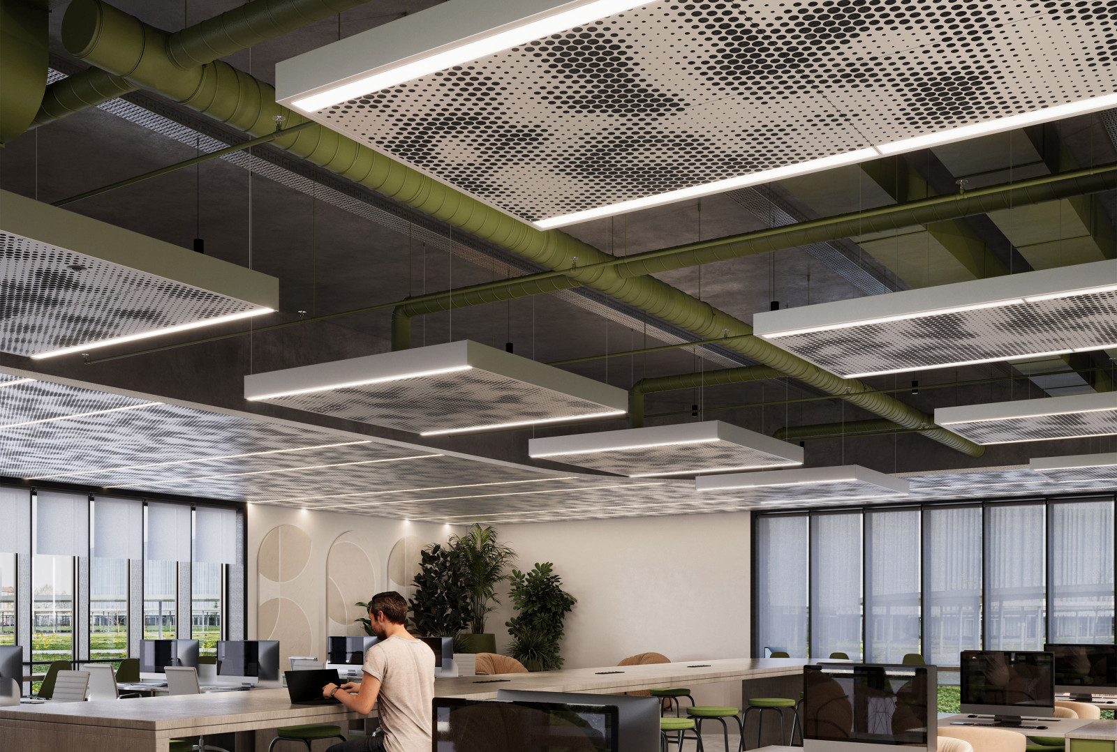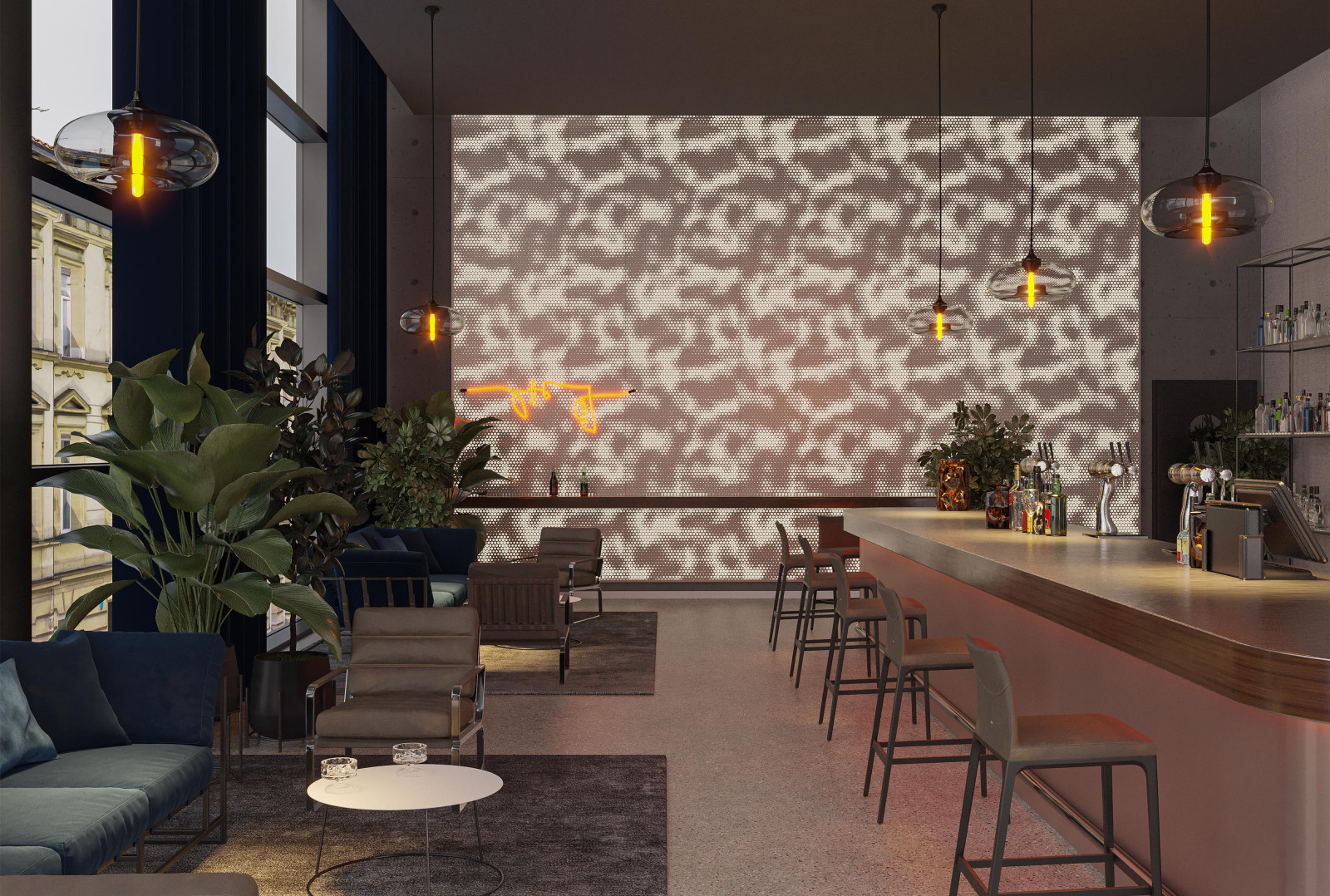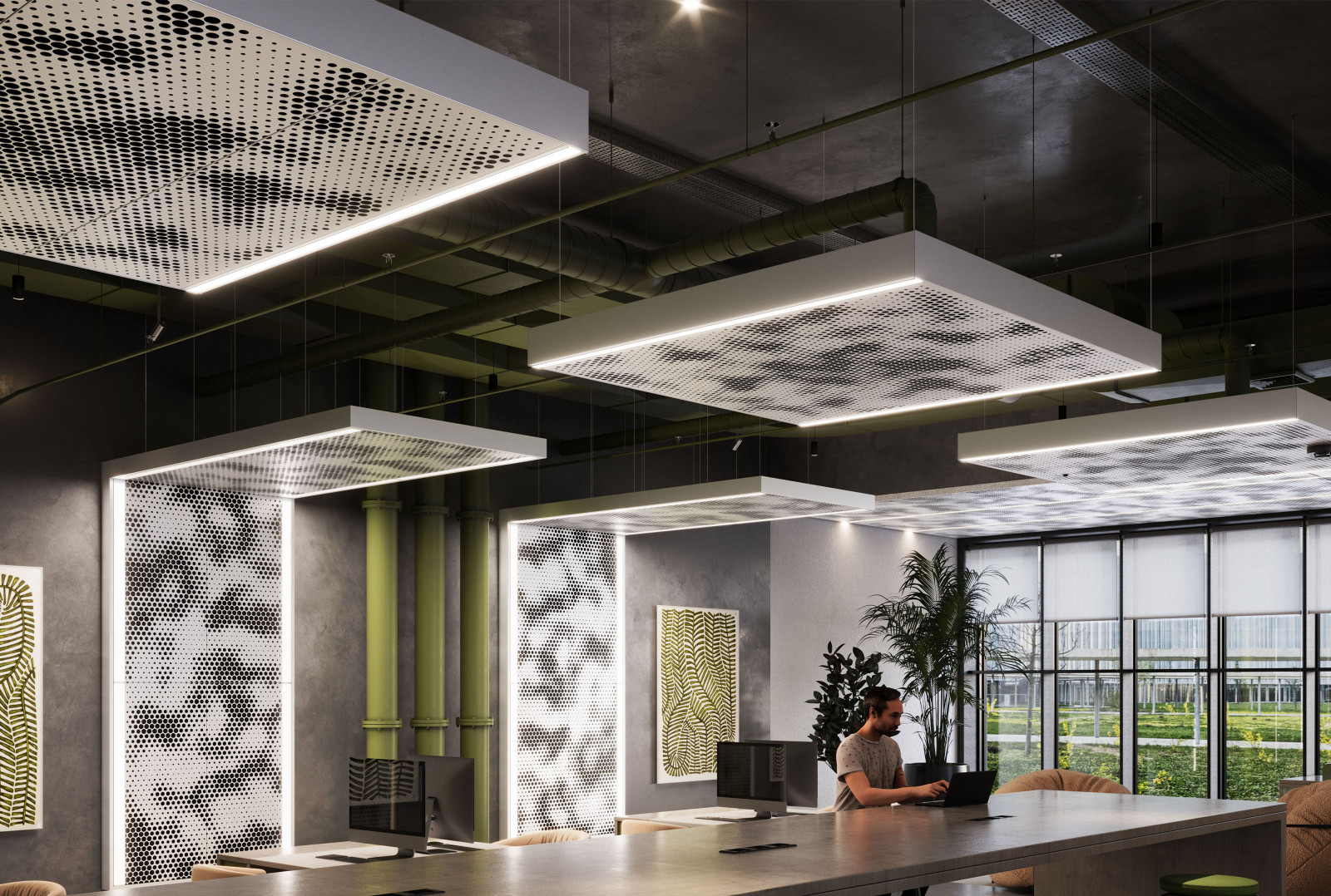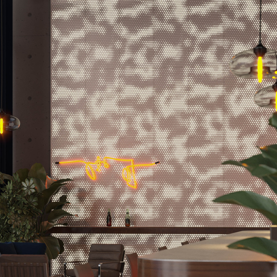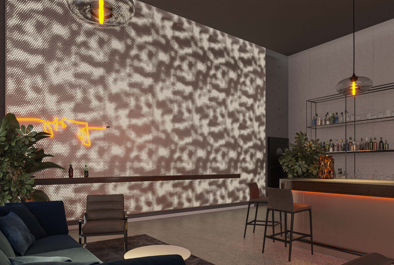 Introduce an air of mystery and intrigue to your space with Dappled’s organic perforation pattern. Marbled dots are scattered sporadically, creating a textured and visually exciting effect across the panel. Dappled brings the aesthetics of a topographical map or weather pattern, offering your project an abstract, natural design. Choose from various powder coat finishes and optional lighting or Soft Sound® acoustic backers.