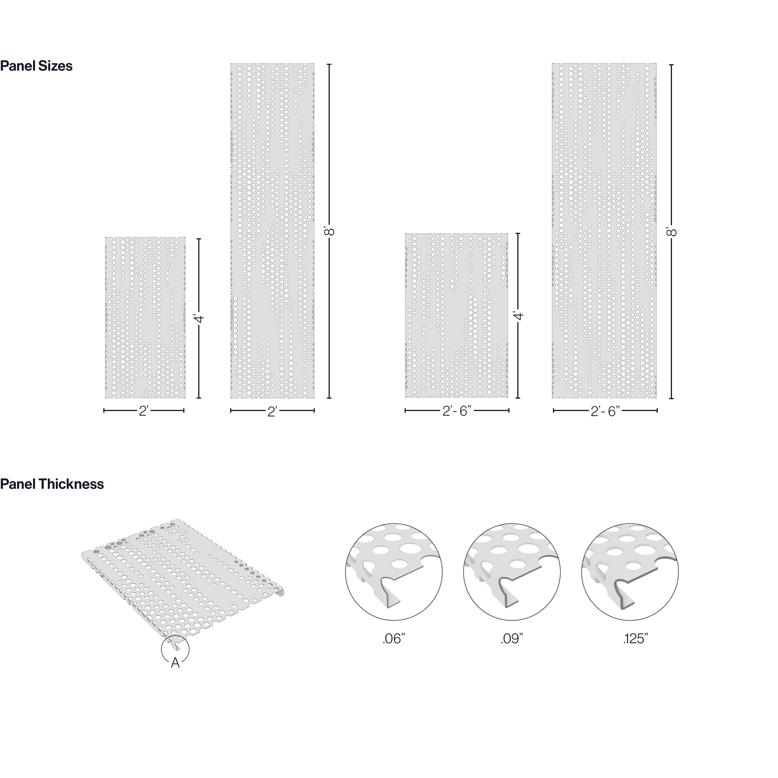 Panels are made available in a variety of colors. See our powder coat brochure for standard and premium options. Customized color matching is also available.