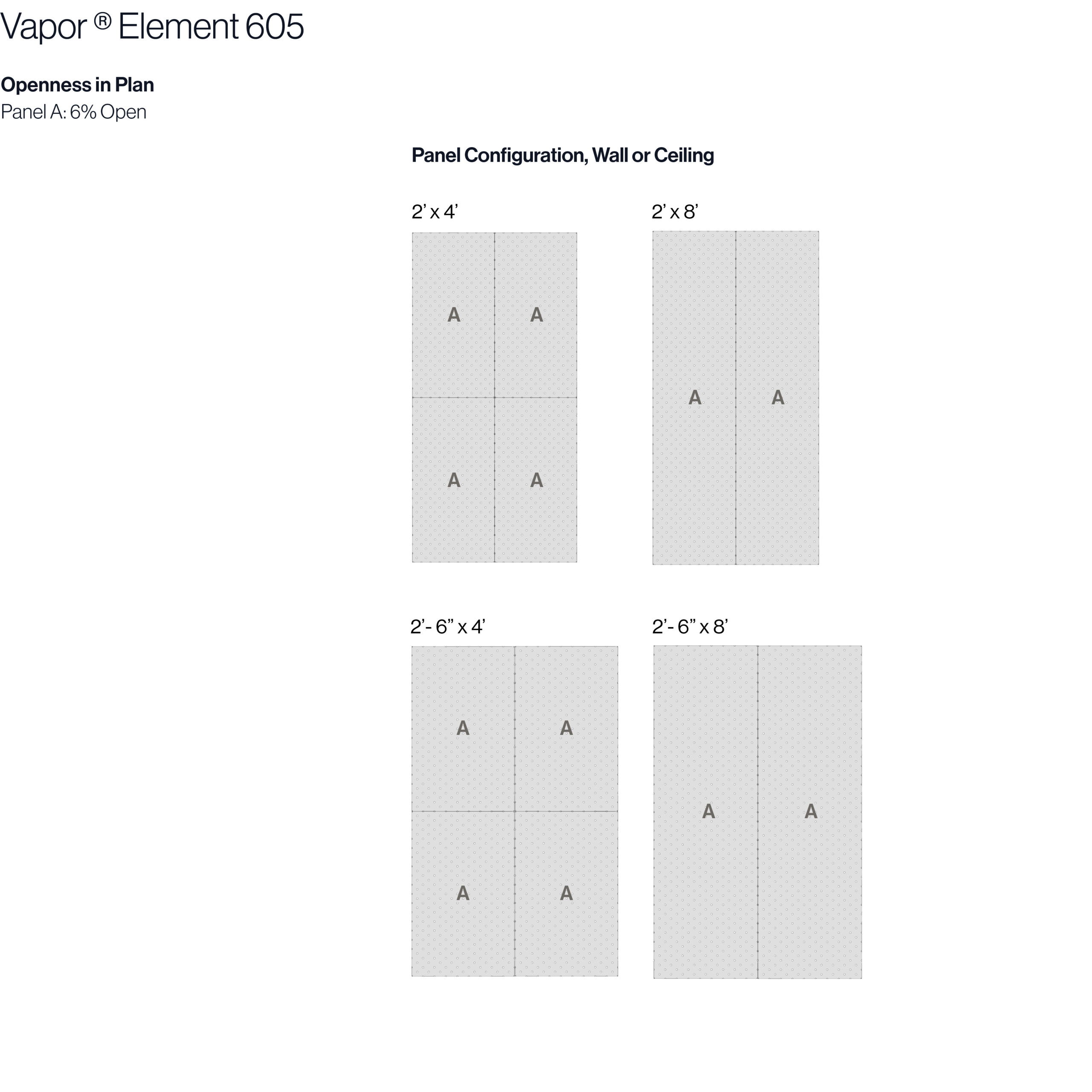 Vapor® Element 605 powder-coated aluminum torsion spring panels take the standard grid and enhance it with elegant minimalism. With equal-sized circular holes evenly spaced on each panel, your design gets a feeling of consistency and cohesion. Get a Quote