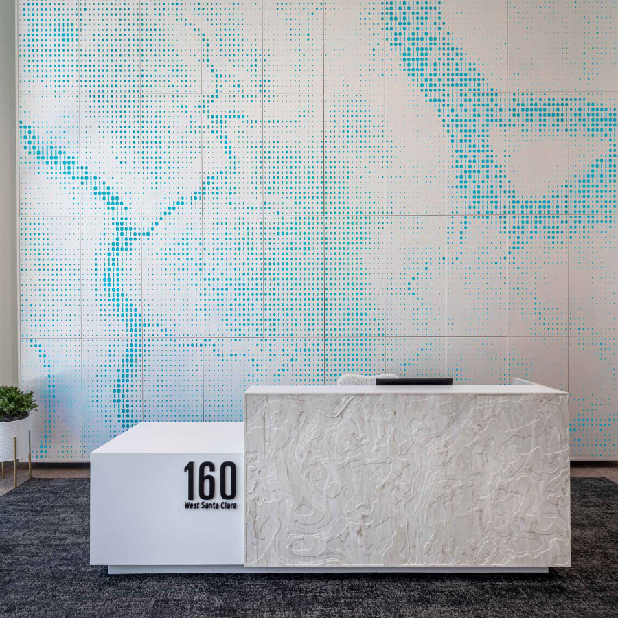 Vapor® Graphic Perf® turns wall and ceiling tiles into a limitless canvas, combining the best aspects of two of Arktura's most popular offerings - Vapor® and Graphic Perf® - into one versatile system. Let Arktura apply its proprietary, algorithmic software and manufacturing expertise to transfer any image or pattern into perforated metal torsion spring panels. Like our Vapor® Family of Products, these are fully compatible with Arktura's Vertika® wall channel and standard grid systems, to make installation across walls and ceilings effortless. Add available custom color, Soft Sound® acoustic backer panels, and Arktura's integrated lighting, and the opportunities are truly endless.