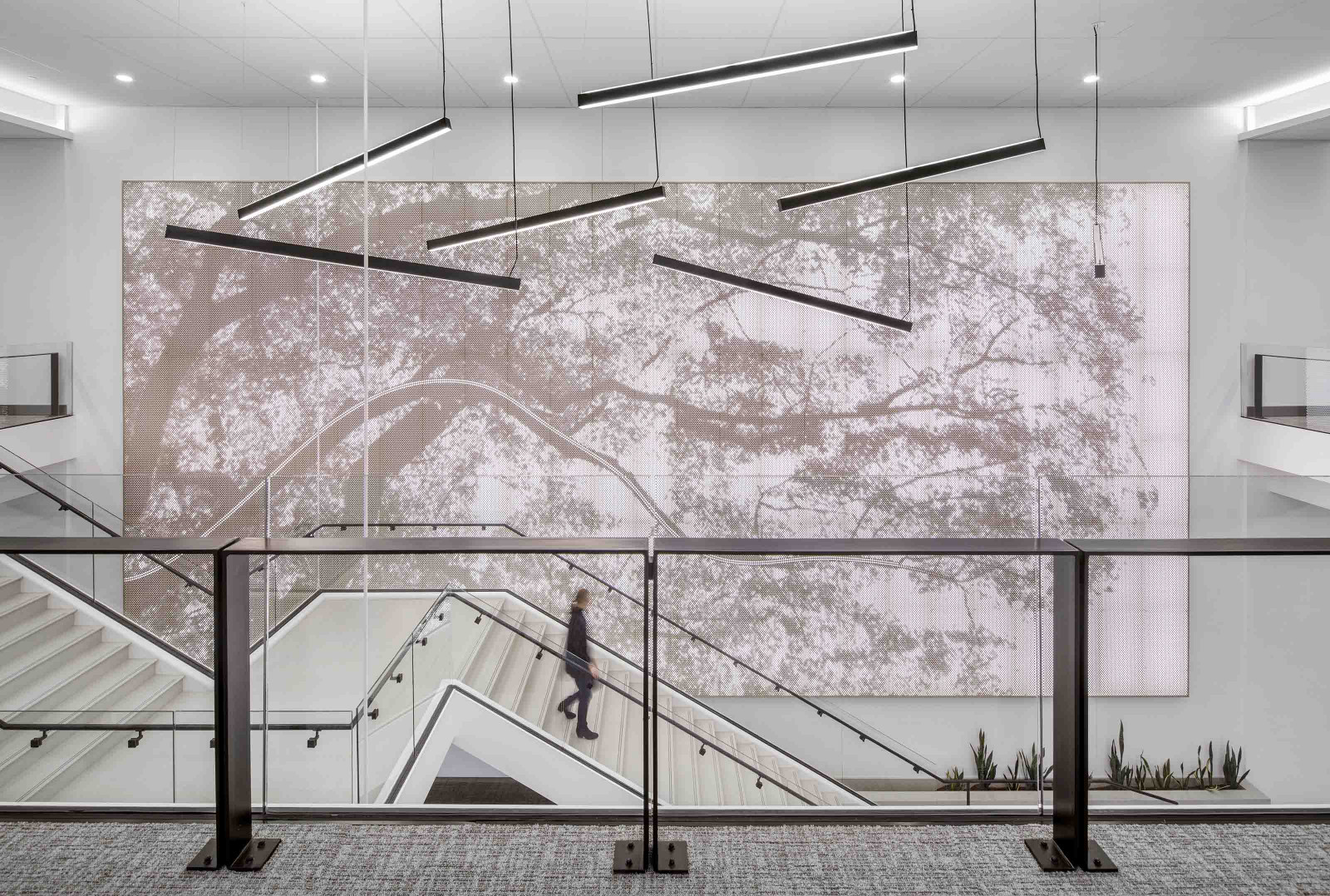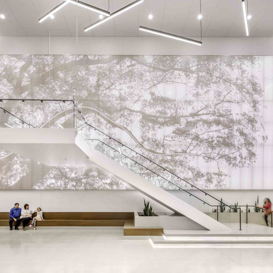 Vapor® Graphic Perf® turns wall and ceiling tiles into a limitless canvas, combining the best aspects of two of Arktura's most popular offerings - Vapor® and Graphic Perf® - into one versatile system. Let Arktura apply its proprietary, algorithmic software and manufacturing expertise to transfer any image or pattern into perforated metal torsion spring panels. Like our Vapor® Family of Products, these are fully compatible with Arktura's Vertika® wall channel and standard grid systems, to make installation across walls and ceilings effortless. Add available custom color, Soft Sound® acoustic backer panels, and Arktura's integrated lighting, and the opportunities are truly endless.