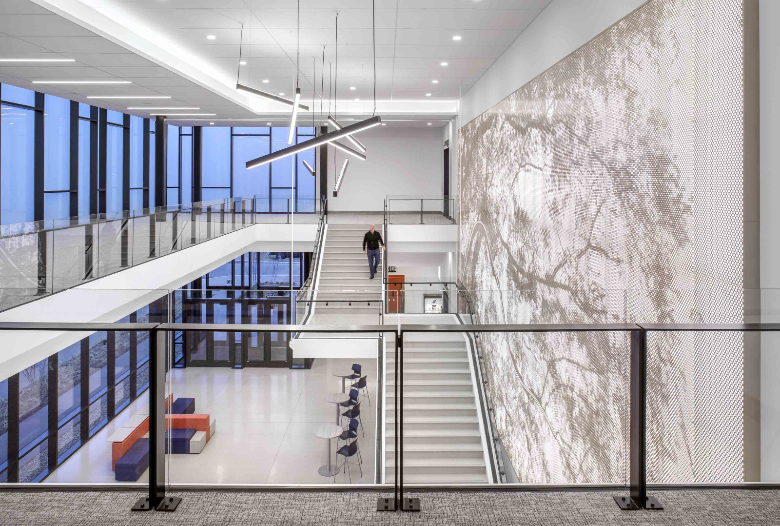 Vapor® Graphic Perf®'s optional Soft Sound® backer material reduces the impact of noise from everyday annoyances like ringing, typing, and chatter resulting in a more pleasant and productive environment. The Soft Sound® backer works in concert with the design to help reduce and control reverberations leaving a lasting impression at scales ranging from assembly halls to conference rooms.