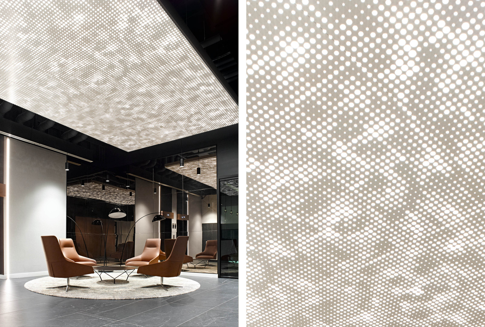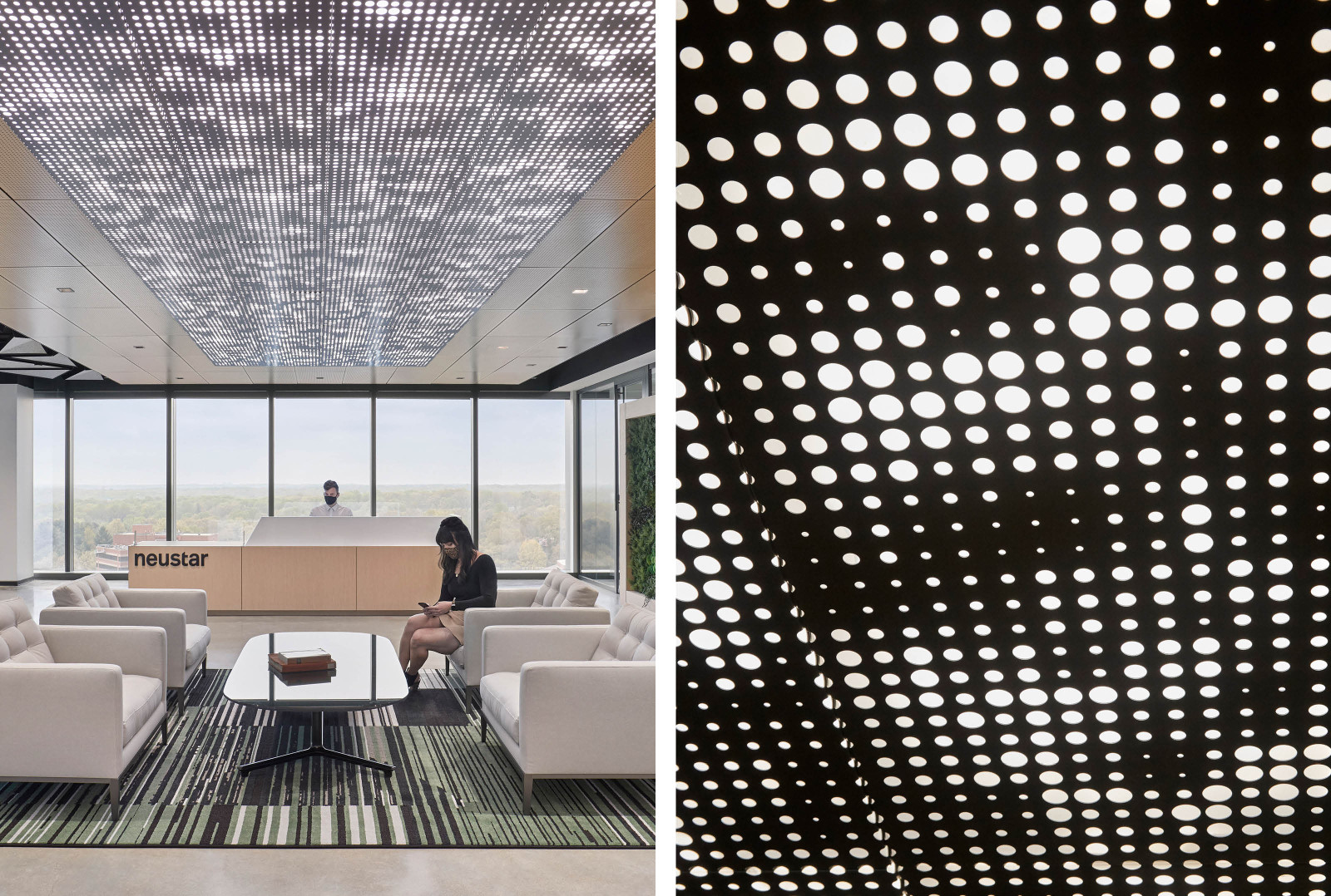 Achieve uninterrupted patterning across your space. Vapor® patterns have perforations that wrap around the edges of each panel, concealing where patterns start and end.