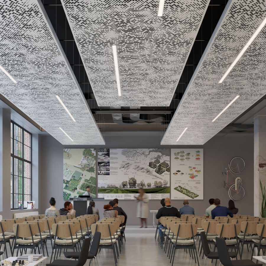 Vapor®’s optional Soft Sound® backer material reduces the impact of noise from everyday annoyances like ringing, typing, and chatter resulting in a more pleasant and productive environment. The Soft Sound® backer works in concert with the design to help reduce and control reverberations leaving a lasting impression at scales ranging from assembly halls to conference rooms.