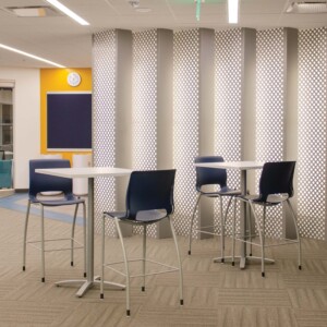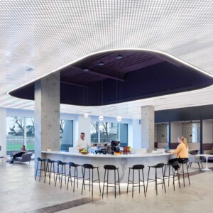 Vapor® Element powder-coated aluminum torsion spring panels take the standard grid and enhance it with elegant minimalism. With equal-sized circular holes evenly spaced on each panel, your design gets a feeling of consistency and cohesion. Pair with our integrated backlighting for an illuminated look or with our Soft Sound® backer for acoustic benefits.