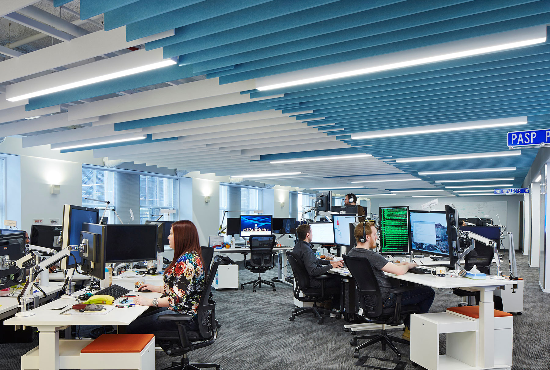 Analog is the playground for linear experimentation. Customize your baffle ceiling to set the rhythm for your space by altering the fin depth, spacing, and even color. So while your design may be on the straight and narrow, it can still take viewers by surprise when you add your own, custom twist. Analog’s fins are available in powder-coated steel or our acoustic Soft Sound®.