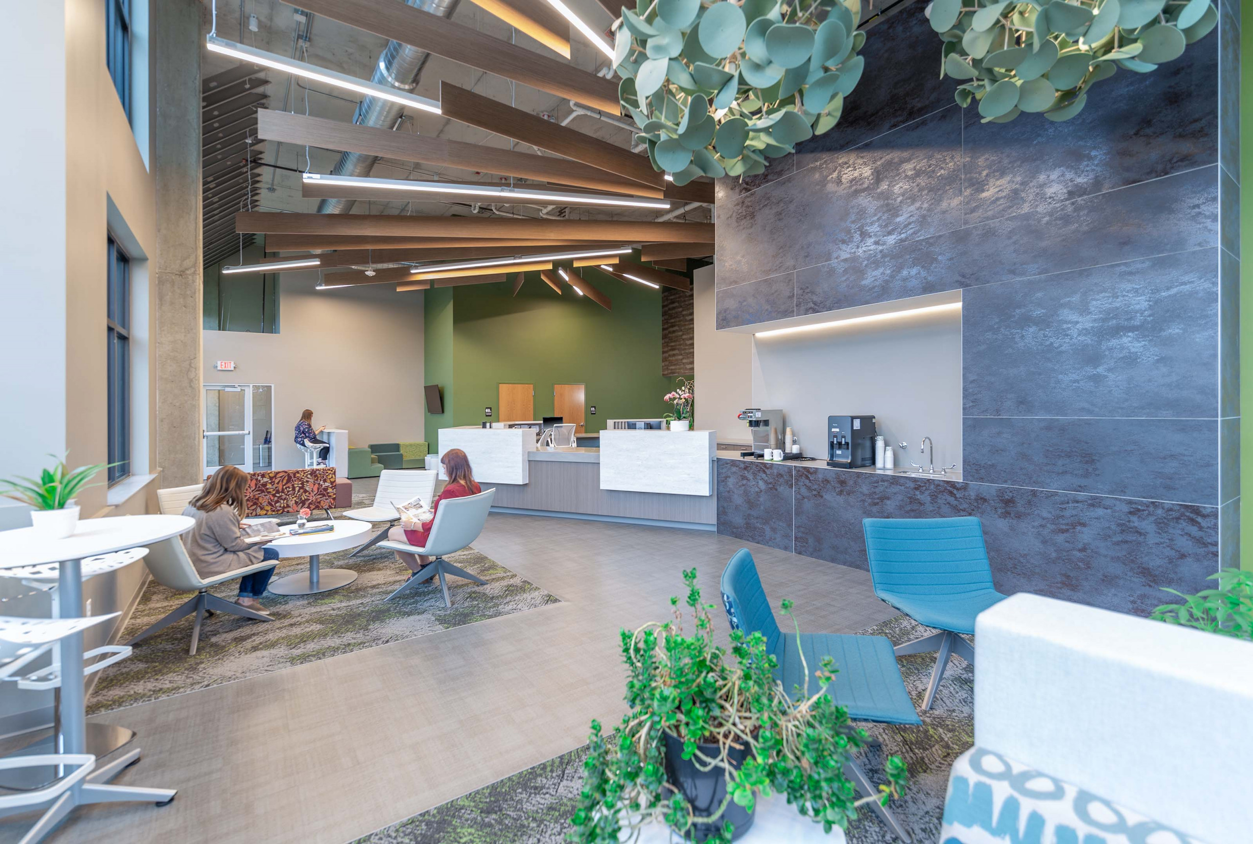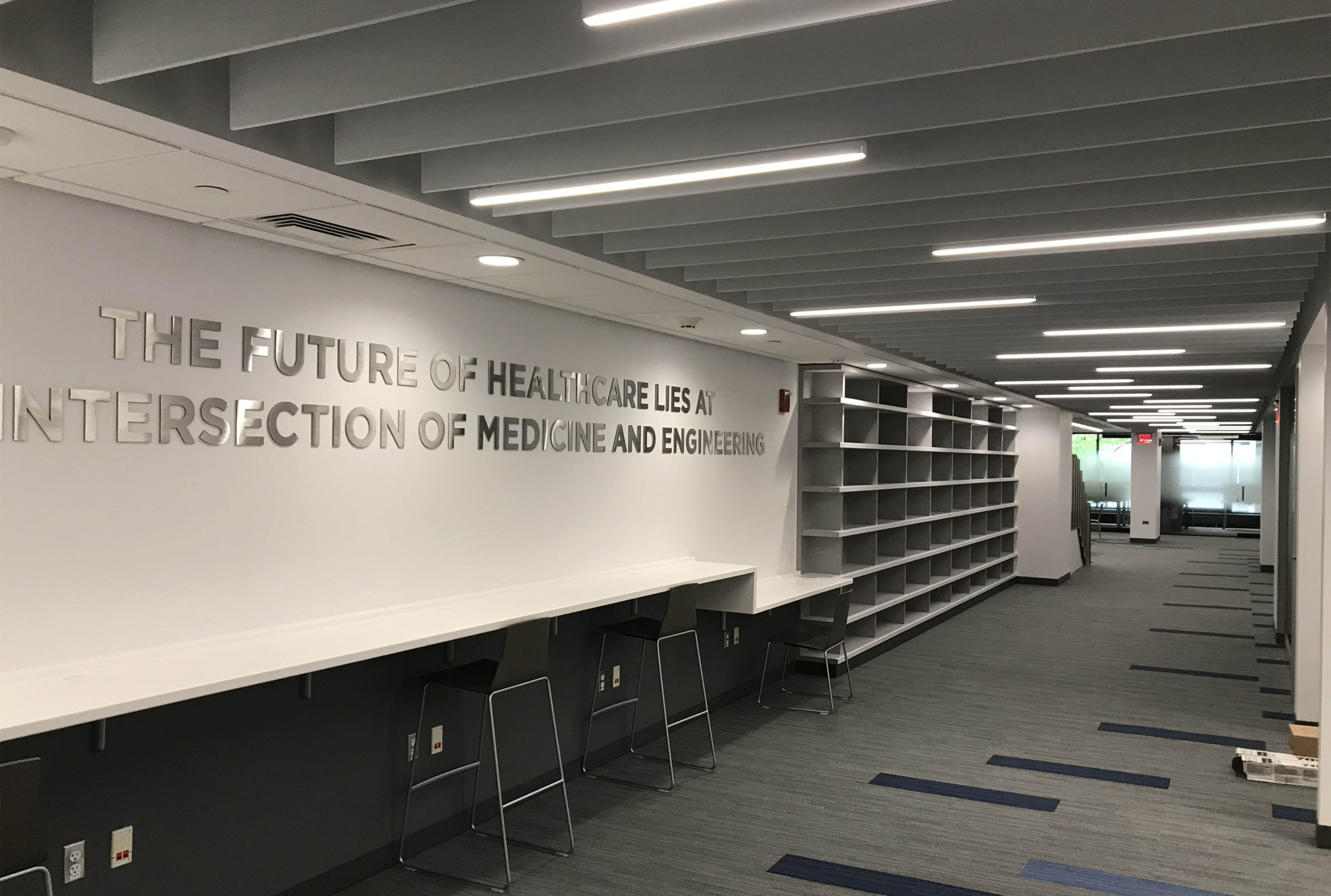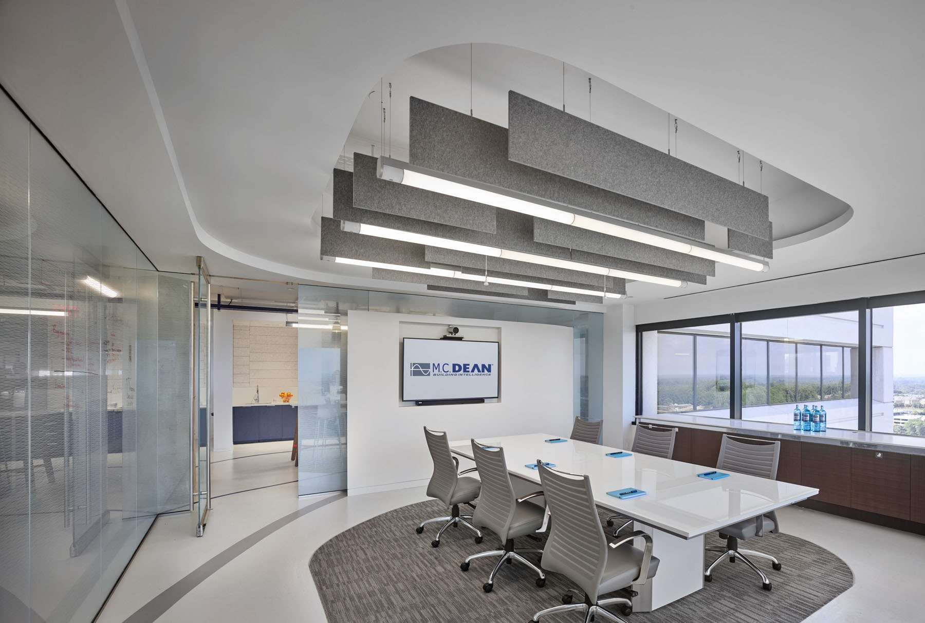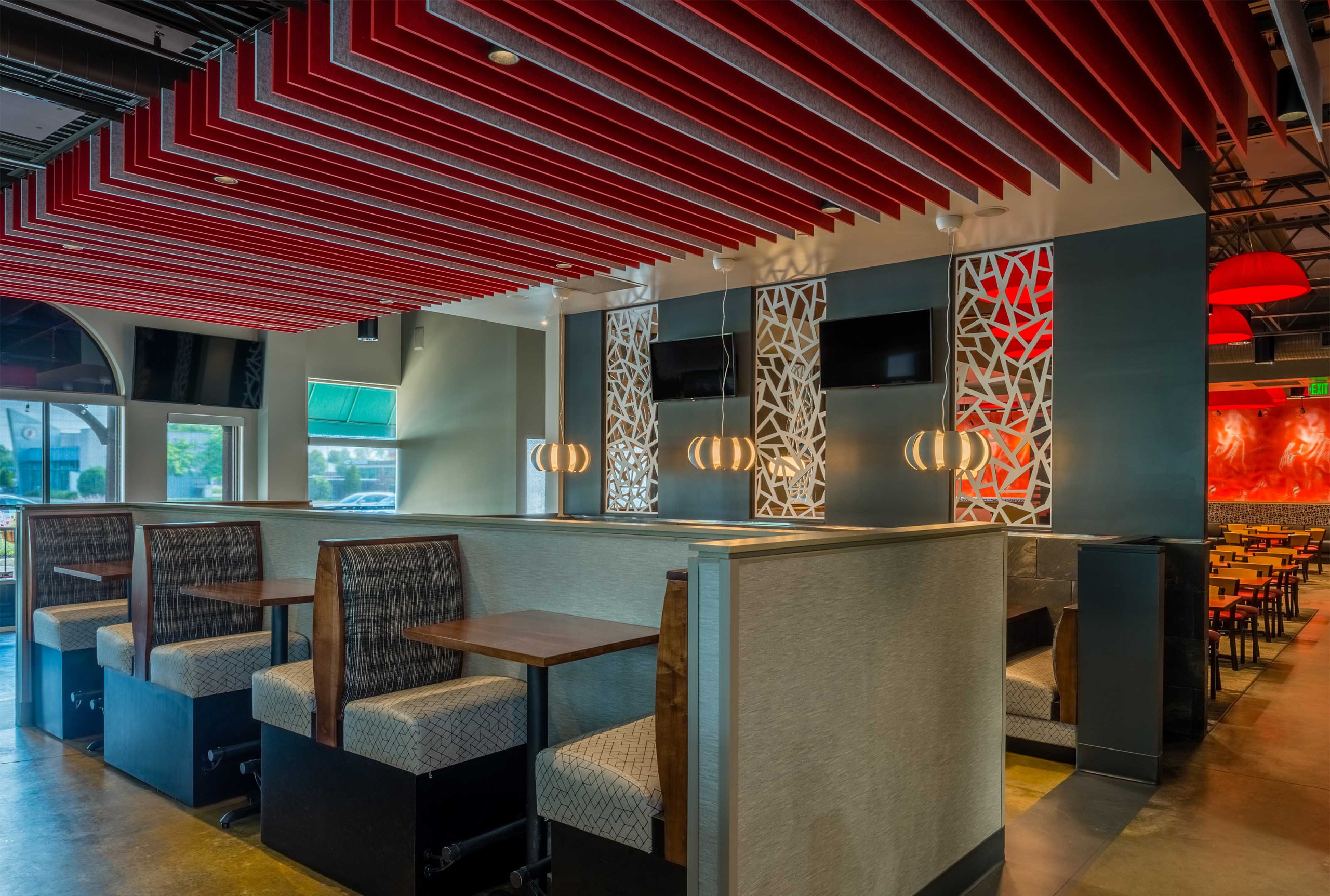 SoundEdge® ceiling system offers flexible building blocks to easily achieve enhanced acoustical performance and design effects. Its modular single fin design, available in a multitude of lengths and depths, is easy to install, and can be mixed and matched in numerous configurations. SoundEdge® is constructed from our Soft Sound® acoustical material (100% PET plastic with up to 60% recycled content) to drastically reduce sound reverberation.